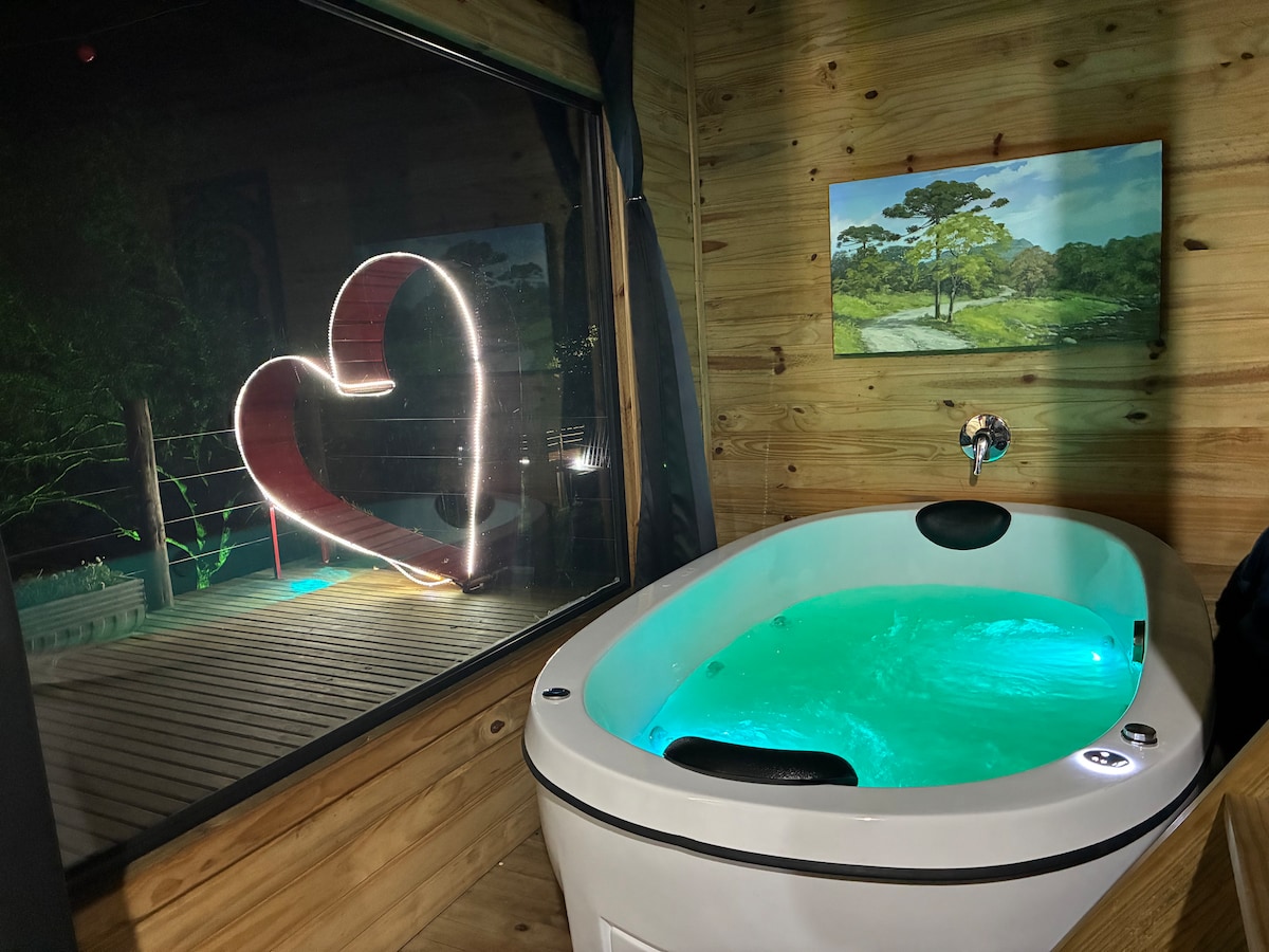 A Cabana LUZ, é a segunda da Villa Vida Cabanas e idealizada para casais, grupos e famílias. Charmosa ,elegante e equipada para proporcionar dias inesquecíveis . Possui aquecimento a gás, calefator, ar condicionado quente e frio e eletrodomésticos modernos para seu conforto. Com área de 180 m2 , a Cabana Luz acomoda confortavelmente até 5 pessoas nas duas suítes e sofá cama, sala integrada, cozinha completa, banheira e um deck maravilhoso com churrasqueira em meio a natureza exuberante.