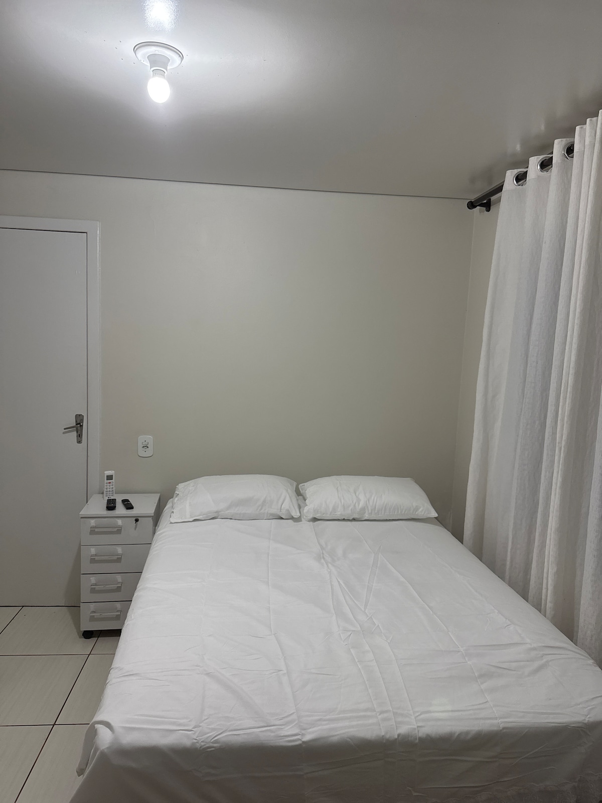 Apto com 3 quartos 1 suite com banheiro e Ar 12.000btus 1 quarto casal com Ar 12.000btus 1 quarto solteiro com ventilador 1 banheiro social 2 garagem Primeiro andar, fácil acesso. Sala de jantar com 6 cadeiras Cozinha completa, fogão, microondas, lavanderia, secadora, geladeira, cafeteira, Tv Smart com TV a cabo digital Maquina de lavar roupa Wifi de 500mb Acesso sem chave, por fechadura digital. No centro da cidade. 200mt de restaurantes, bancos, hospital, igreja, farmácia, escola, e praça!