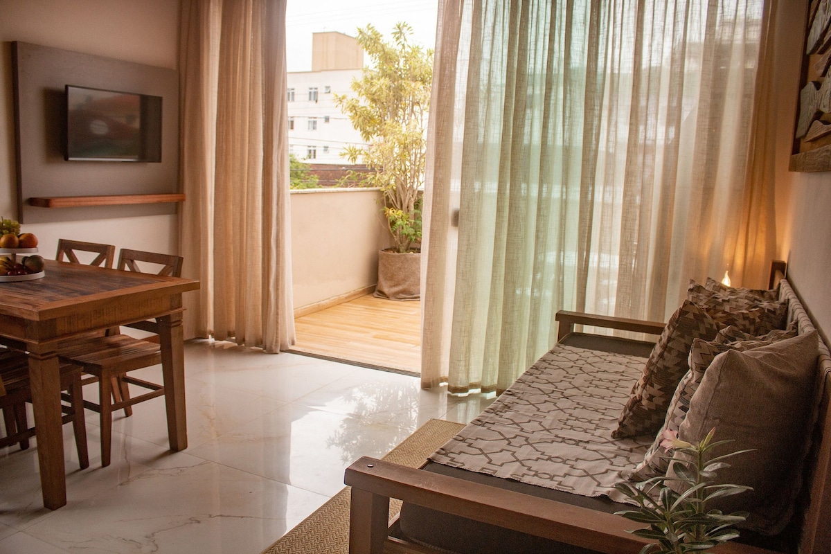 Nosso Studio é aconchegante, tem ar condicionado, e irá atender todas as suas necessidades. Seja em férias ou à trabalho, aqui você se hospeda com tranquilidade e conforto. Providenciamos todos os itens necessários para que você tenha uma excelente estadia. Boa cama, sala de estar, cozinha equipada e mesa de jantar ou para trabalho. Além disso, você recebe informações e orientações turísticas. Nossos aptos são ideais para duas pessoas podendo acomodar mais 2 crianças em sofá cama. 🌼