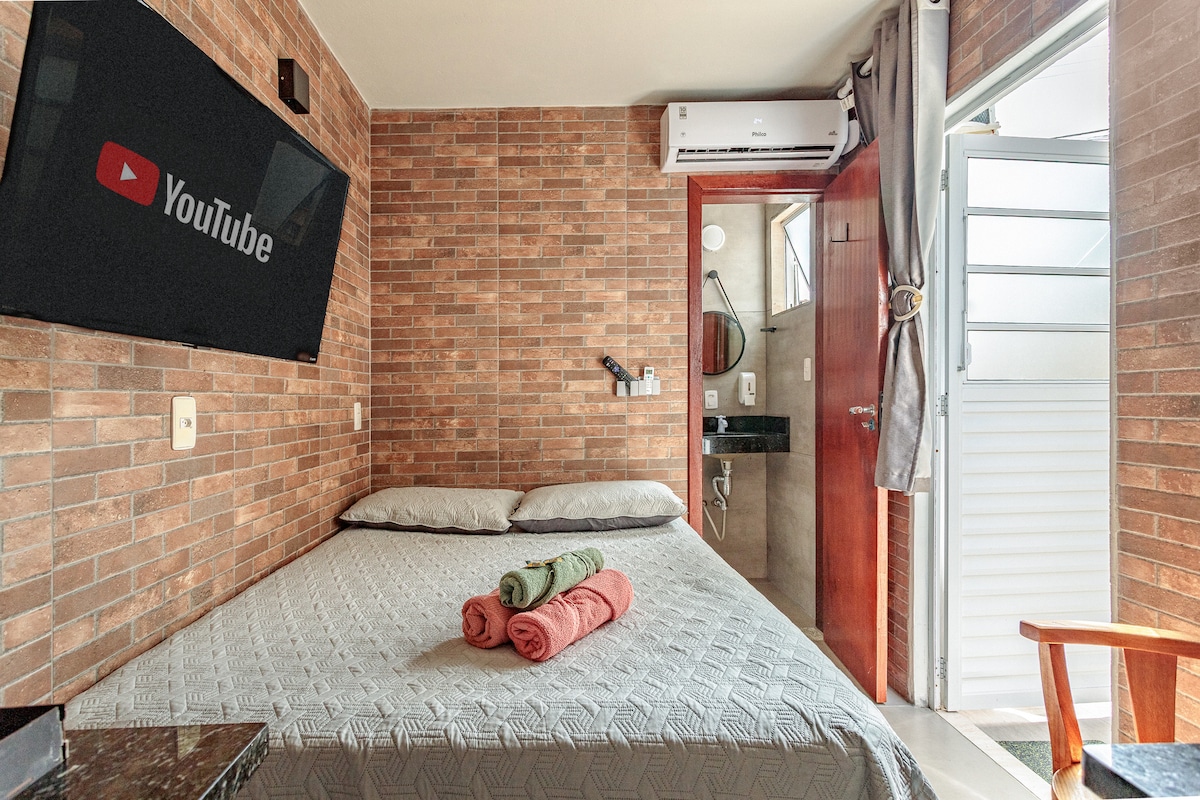 Perfeito para você que vem à cidade, a trabalho ou lazer, e procura um espaço que tenha tudo que você precisa, bonito, aconchegante e com um ótimo preço! Os móveis foram todos feitos sob medida para garantir conforto à você! Você terá acesso a internet Wi-Fi e Smart TV para assistir filmes e séries. Fique a vontade para trazer seu dispositivo para games! Com a praticidade de ter vaga de garagem disponível! APENAS os hóspedes podem acessar o imóvel, visitas não são permitidas.