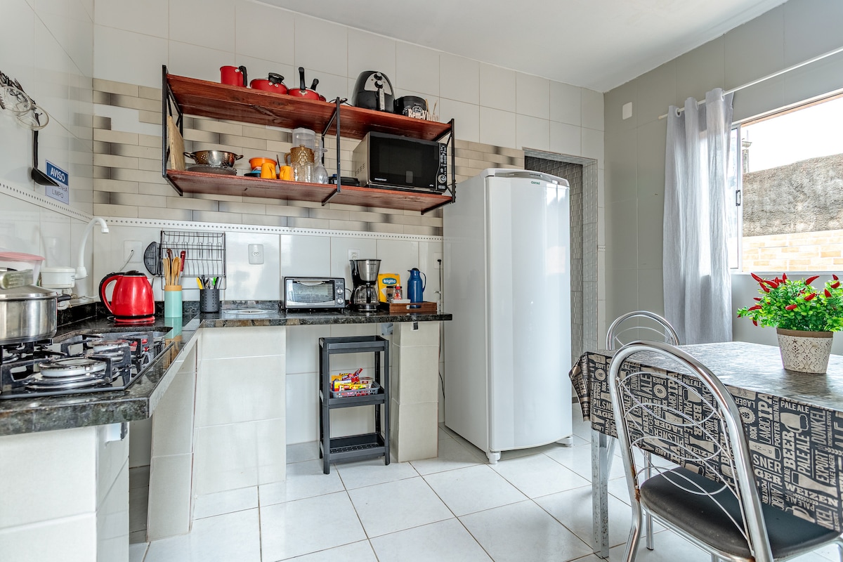 Casa completa e funcional, ideal para uma pessoa ou casal, também podendo acomodar mais 2 pessoas no sofá-cama da sala, são 33m² super bem distribuídos com muito conforto e aconchego. No quarto temos uma cama de casal, ar condicionado e espaço para acomodar seus pertences. A cozinha é bem completa, tendo tudo que é necessário. Localização de fácil acesso tanto para ilha quanto para BR101. Vaga de garagem livre no térreo. Acesso ao apto através de uma caixa com senha onde guardamos a chave.