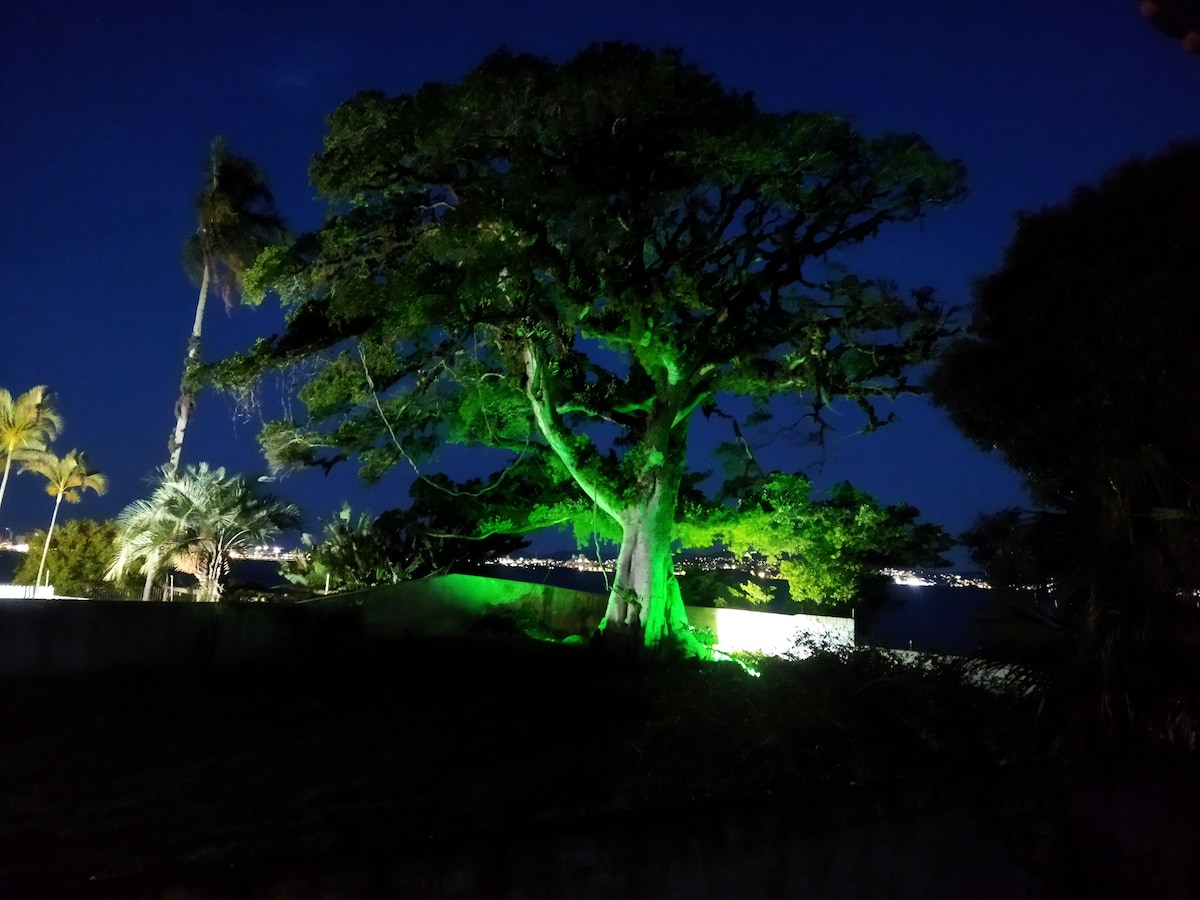 Este lugar é único com muito estilo e uma linda vista da ponte Hercílio luz e a beiramar continental. Em frente há um parque gramado, quadras de vôlei, pista de skate, patinetes e barzinho. 5 minutos do centro de Florianópolis. AR CONDICIONADO FRIO EM TODOS OS QUARTOS. Amplo deck area gourmet com um quarto, p/casal bicama fora do qto 2pessoas+sofá-cama p/2pessoas. 1 minicasa redonda com banheiro + cozinha compacta+1cama casal+1 solteiro. 1 qto redondo independente p/casal. 4 vagas estacionamento