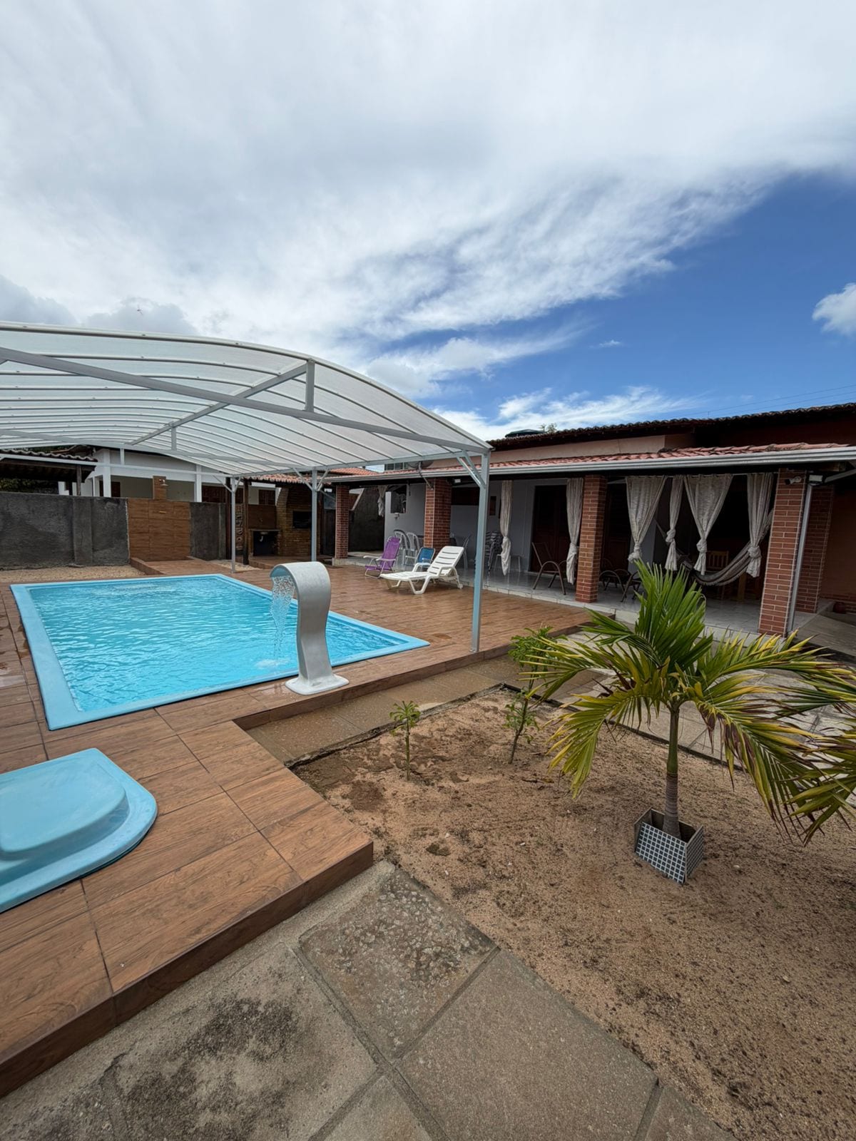 Casa à 50 metros da praia. Ampla, com 10 quartos , sendo 5 suítes (algumas com varanda e redes),2 quartos familiar, que dividem um banheiro. Sala de estar, sala de jantar, sala de tv, área trabalho com mesa de escritório, muito arejada, e envolta de jardins. Piscina com bar e área de lazer. Casa ideal para grupos. Gosto de receber bem e por isso a casa foi preparada com todo o conforto e carinho para todos que queiram viver está experiência. Venham saborear um pouco desta tranquilidade.