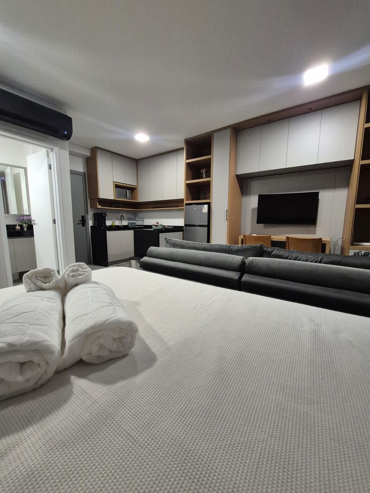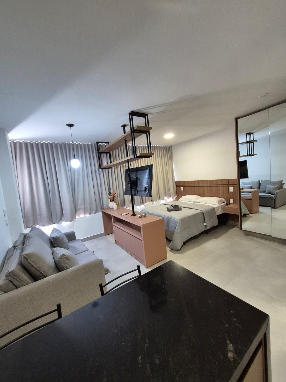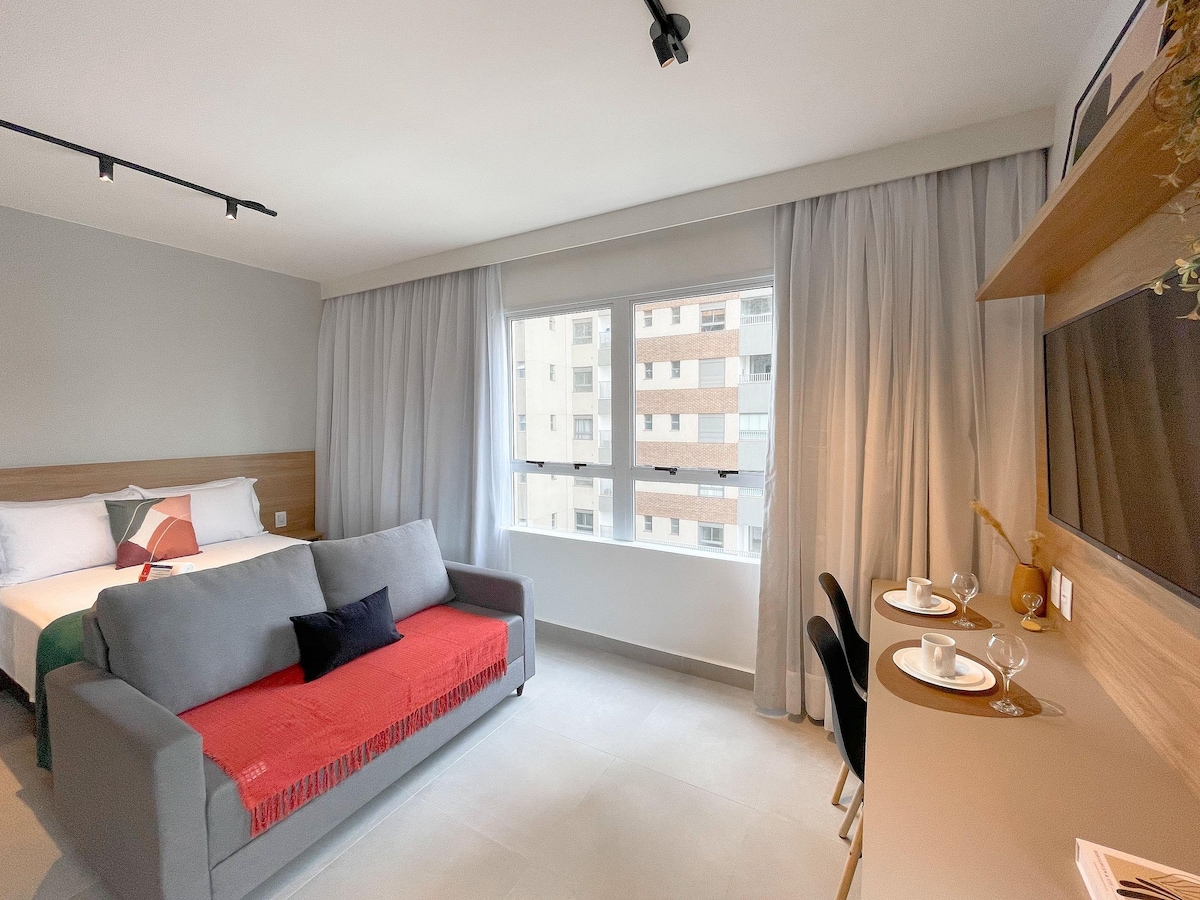 Estúdio novo e elegante no Hype 017, ao lado do Shopping Iguatemi, localizado no 12º andar, com varanda e vista aberta. Ambiente moderno, bem iluminado e cuidadosamente decorado, unindo conforto e funcionalidade. Conta com cozinha equipada, cama confortável, sofá, mesa de trabalho/refeições e ar-condicionado. Ideal para quem busca praticidade, estilo e uma estadia agradável em um dos endereços mais desejados. Vem se sentir em casa!