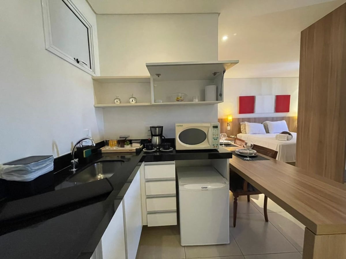 Estúdio elegante no Unique, com decoração moderna e projeto com acabamento diferenciado pensado para conforto e funcionalidade. Possui sacada fechada em vidro com churrasqueira, cozinha completa, sofá-cama, Smart TV, ar-condicionado e cama queen aconchegante. Ahh e com uma vista privilegiada para a cidade. Ideal para quem busca praticidade, estilo e um ambiente acolhedor para viver momentos especiais.