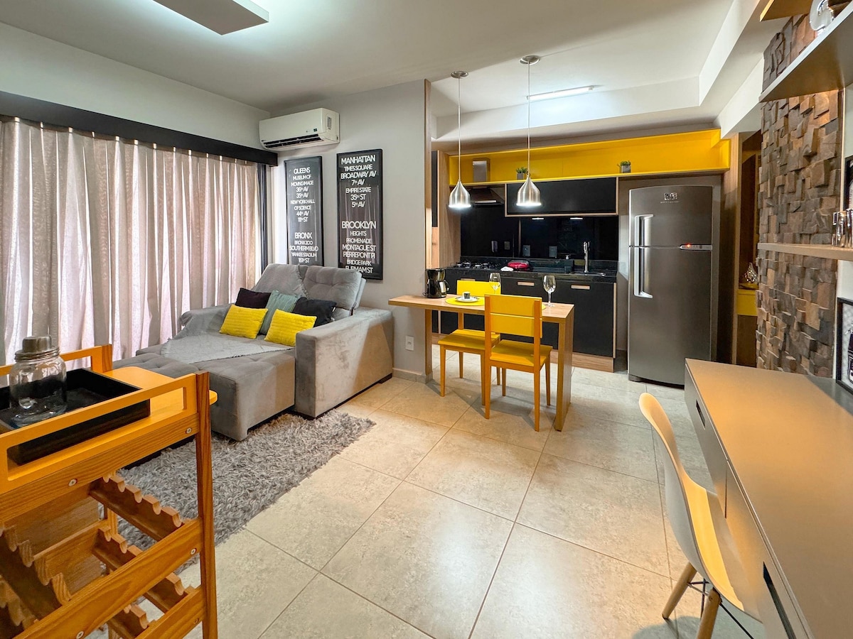 O apartamento está localizado em uma região privilegiada da cidade, e totalmente planejado para a vida moderna, 2 quartos, incluindo um home office adaptado e integrado ao ambiente da sala. Equipado com lençóis e toalhas de luxo, TV , internet, utensílios de cozinha, microondas, geladeira, liquidificador, bebedouro, airfryer, máquina de café, grill, jogo de panelas completo, lavadora de última geração. Ambientes com ar condicionado! Condomínio : home office, academia, piscina, playground.