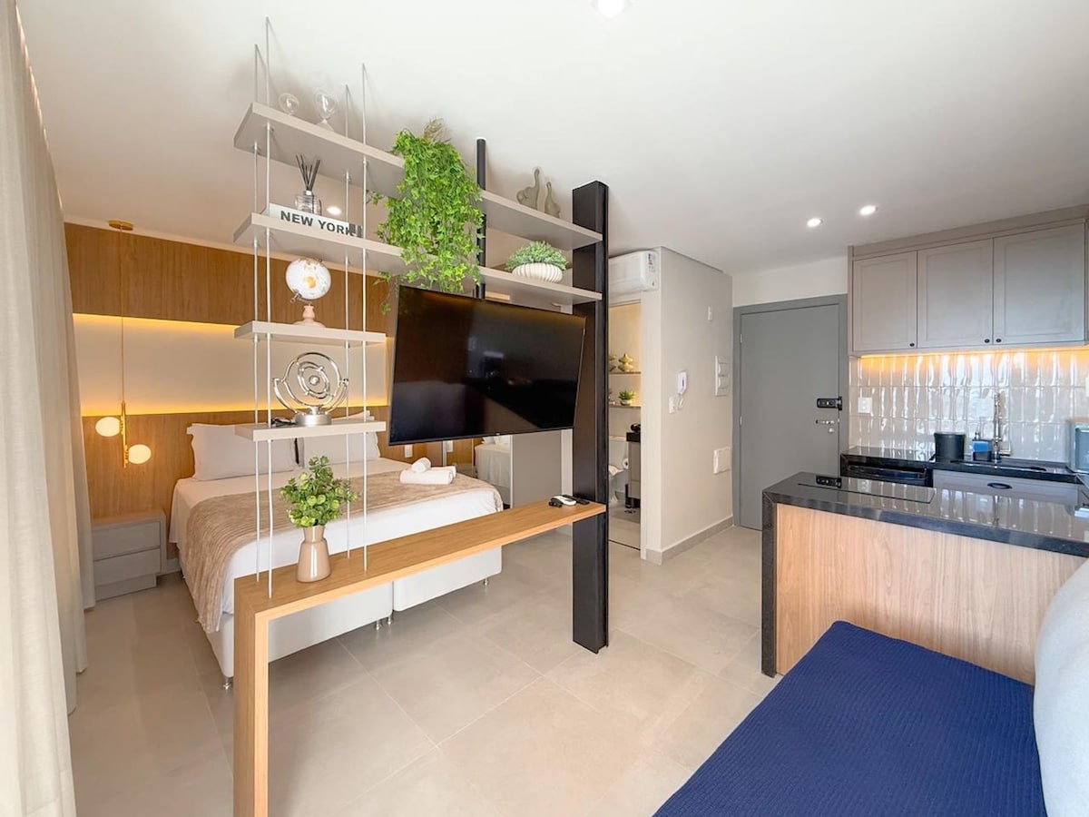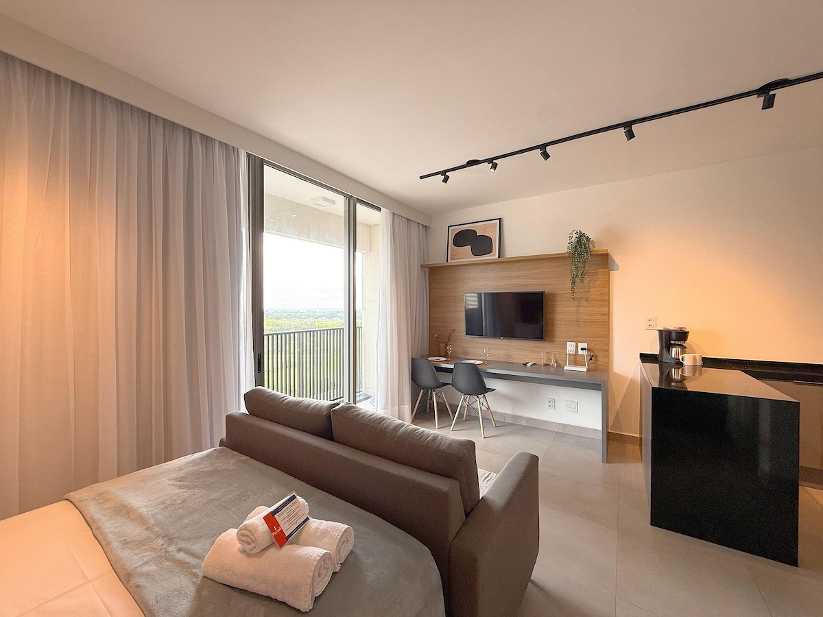 Você se sentirá ótimo neste Studio. A localização é privilegiada e torna o acesso a qualquer ponto da cidade simples e rápido. Próximo ao Shopping Iguatemi, Hospital de Base e a todos os restaurantes, cafés e bares da cidade. O conforto é garantido com cozinha equipada, varanda com bancada para estudos/trabalho, Wi-Fi e ar-condicionado. Muito bem decorado com tudo em perfeito estado de funcionamento e um edifício moderno e seguro com piscina e academia.