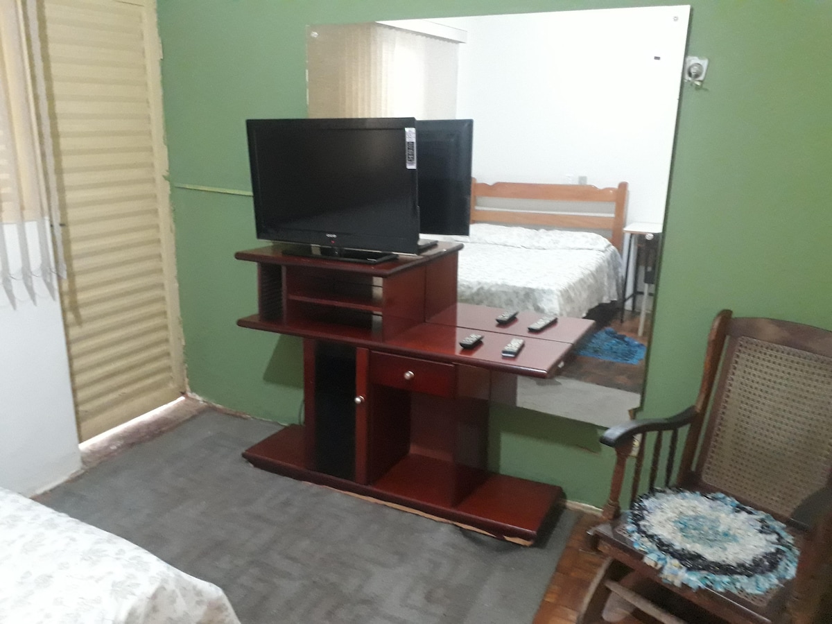 Se você está a procura de um espaço tranquilo, que tenha um ar bem fresco, com privacidade e que você consiga relaxar, acabou de encontrar! Esse apto tem um quarto com cama casal com cortina blackout na janela e ar condicionado. Sala com duas poltronas confortáveis, smart TV e mesa de jantar. Cozinha equipada com geladeira, microondas, fogão e utensílios. Cafeteira Dolce Gusto. Vem se sentir em casa!