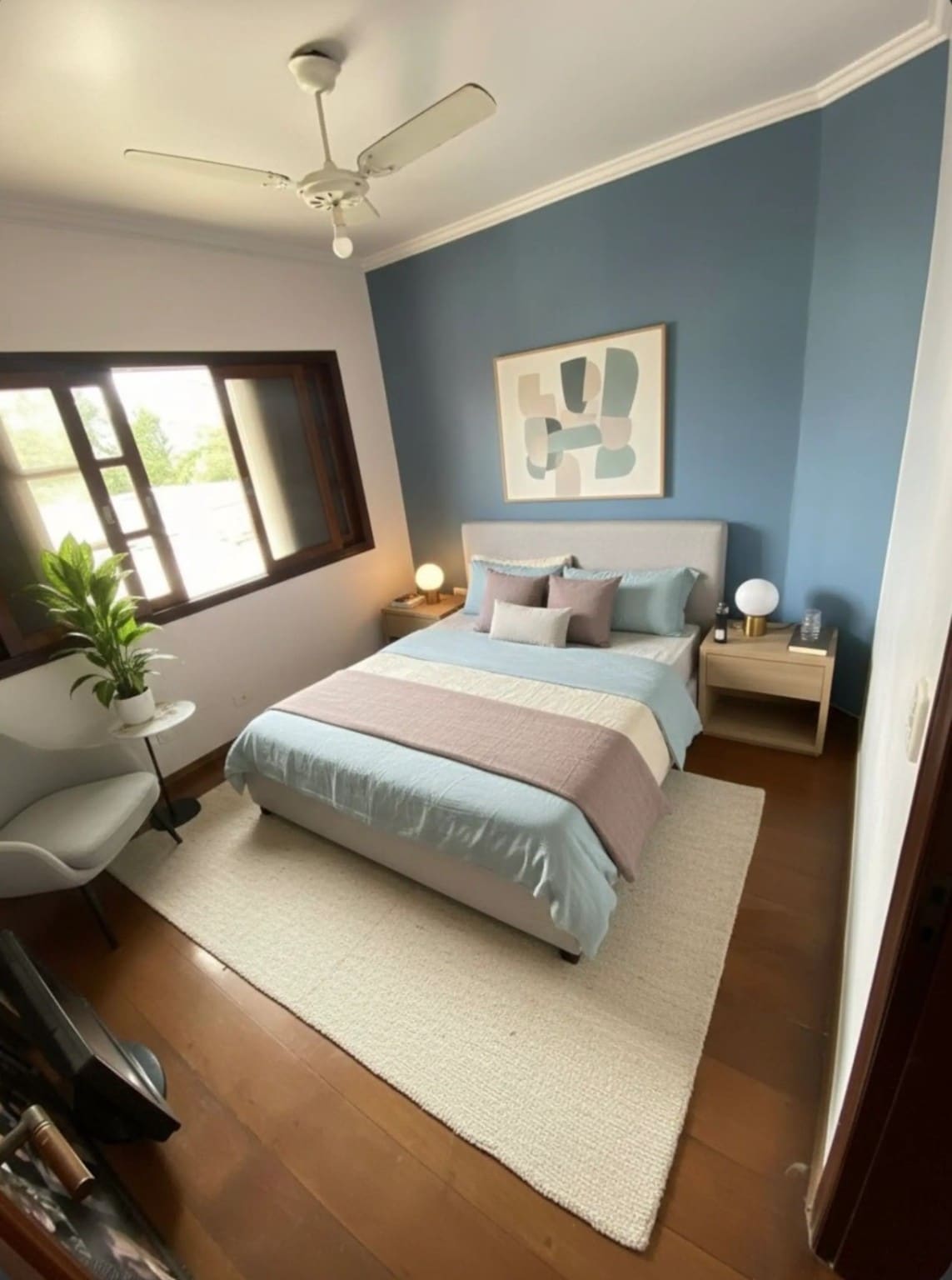 Quarto confortável em casa tranquila com piscina e ambiente acolhedor. O espaço possui cama de casal e banheiro privativo exclusivo localizado em frente ao quarto, utilizado apenas pelo hóspede. Durante a estadia também é possível aproveitar a piscina e áreas externas da casa. Ambiente limpo, simples e bem organizado, ideal para quem busca uma hospedagem prática, tranquila e confortável.