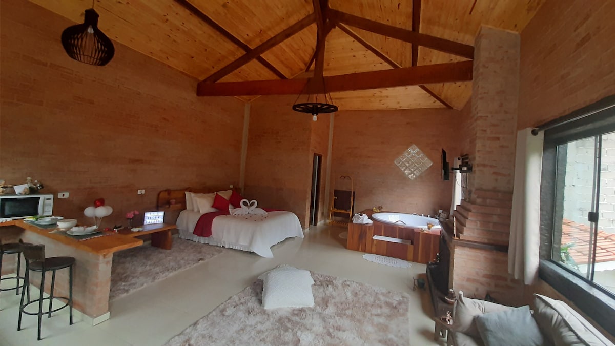 Final de semana selecionar Sexta a Domingo ou Sábado a Segunda (minimo duas diárias). Entrando na sexta ou sábado o checkout estendido até as 15h Uma diária apenas no domingo a segunda, Check-in domingo a partir das 16H até segunda as 16H. Delicioso Café da manhã incluso. Localizado em meio à natureza, o espaço é totalmente reservado. Aqui, vocês podem relaxar longe da correria da cidade, em um ambiente acolhedor e cheio de charme. 40 minutos de São Paulo