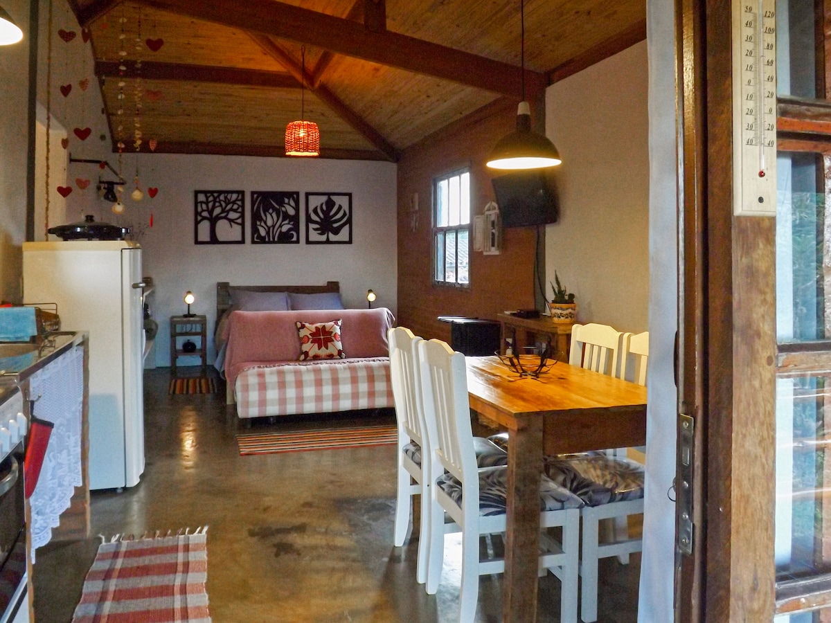 ==com Internet de alta velocidade== Com uma excepcional vista para a Serra da Mantiqueira, este chalé foi especialmente concebido para casais que buscam tranquilidade e momentos de prazer em meio à natureza. De forma integrada, reúne no mesmo espaço sala, quarto e cozinha. Na área externa, é possível aproveitar a vista em quando relaxa em uma hidromassagem aquecida no deck. Localizado em um sitio particular e com total privacidade, este é o local perfeito para descansar!