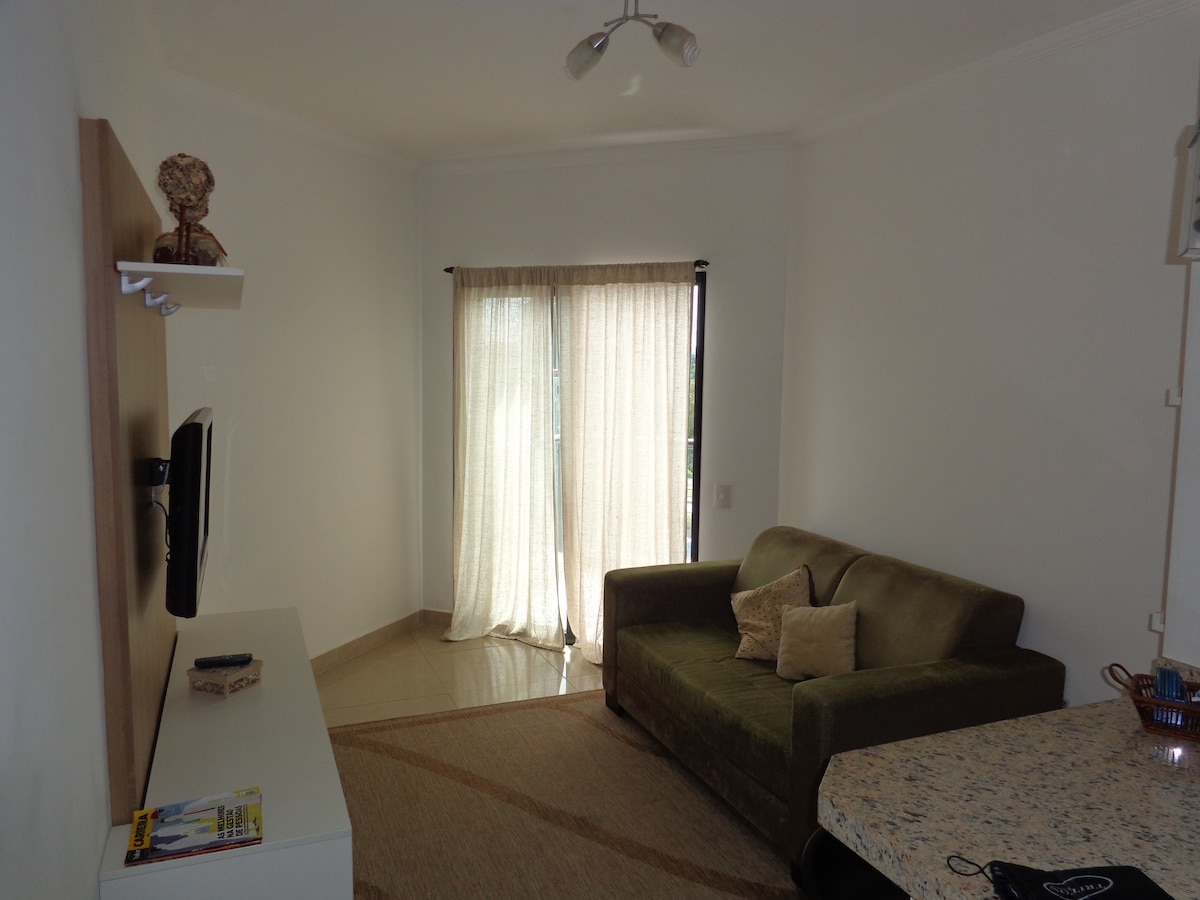 Located in São José’s center, 5 min from CenterVale Mall (walking), CTA, and Dutra. The building offers a 24-hour reception, covered parking, daily apartment cleaning, pool, sauna, gym, restaurant, and laundry (tokens at reception). The apartment includes a full kitchen (oven, fridge, microwave, cooktop), a living room with cable TV and internet, a bedroom with bed, TV, wardrobe, safe, air conditioning, and a balcony with a beautiful view (10th floor).