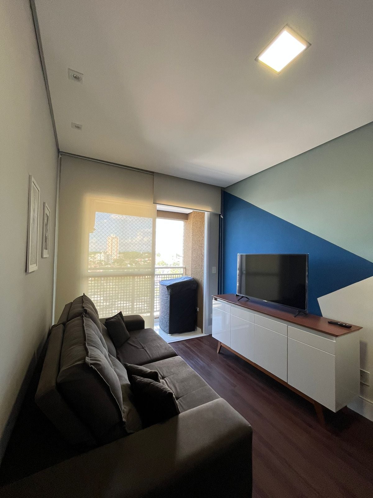 Apartamento moderno de 82m², 2 dormitórios (1 suíte), totalmente mobiliado e com cozinha equipada. Varanda ampla, suite com sacada, móveis novos, cama confortável, Smart TV e Wi-Fi rápida. Espaço para home-office, aquecimento a gás e vaga de garagem. Localização excelente, em frente ao Shopping Colinas e com fácil acesso às vias da cidade. Ideal para até 4 pessoas. Conforto e praticidade em região nobre! Piscina, Sauna, Mercadinho, Portaria 24 horas, 2 Vagas cobertas.