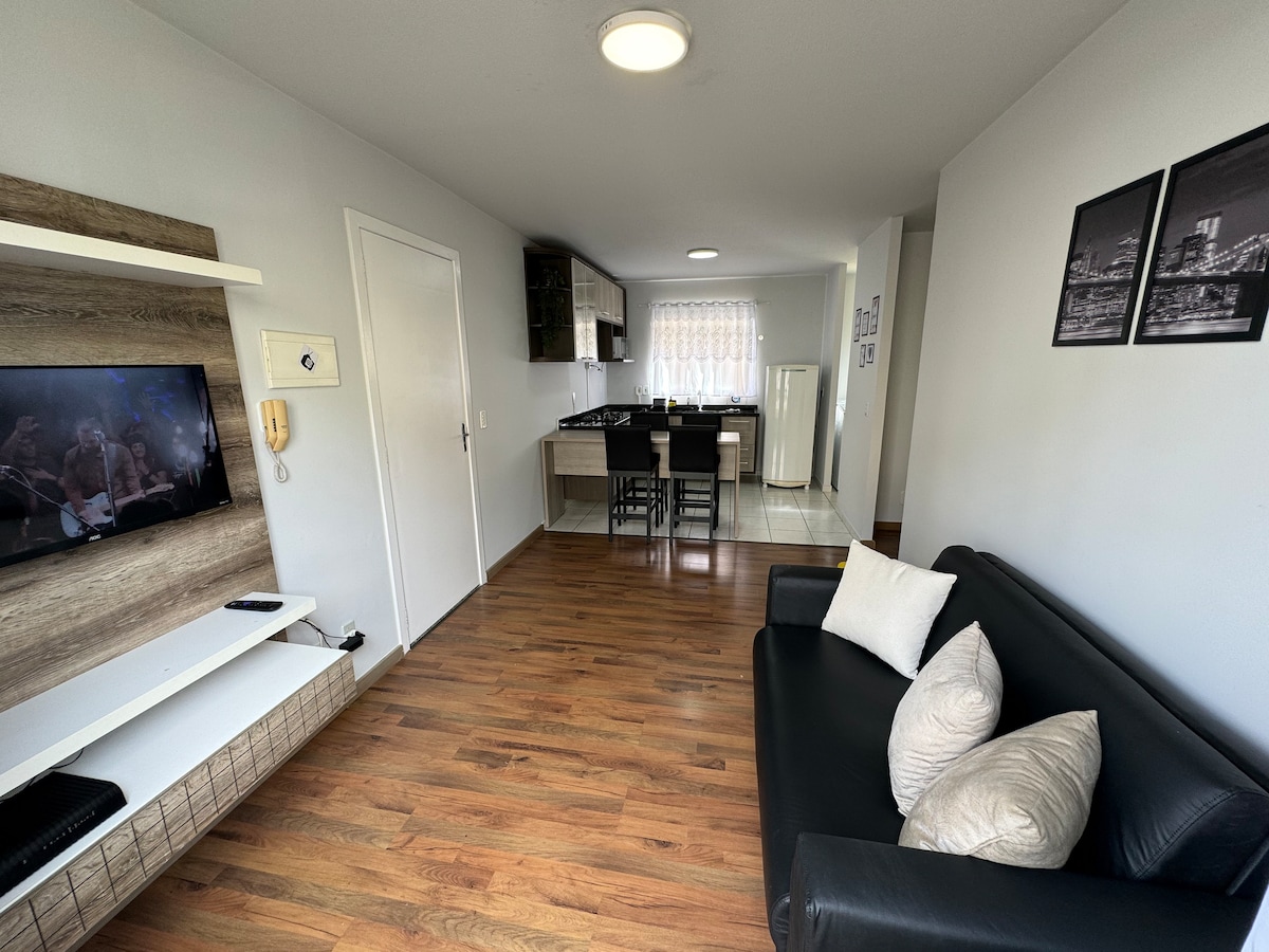 45m² apartment with very spacious rooms, facial recognition access, serviced apartment amenities, and a convenience store in the most central location of São José dos Pinhais — just eight minutes from Afonso Pena Airport, three minutes from the exit to Avenida das Torres/Curitiba, and literally next to the bus terminal. It has a hypermarket and restaurants less than 100 meters away, and all the conveniences of Rua XV de Novembro are just a five-minute walk.