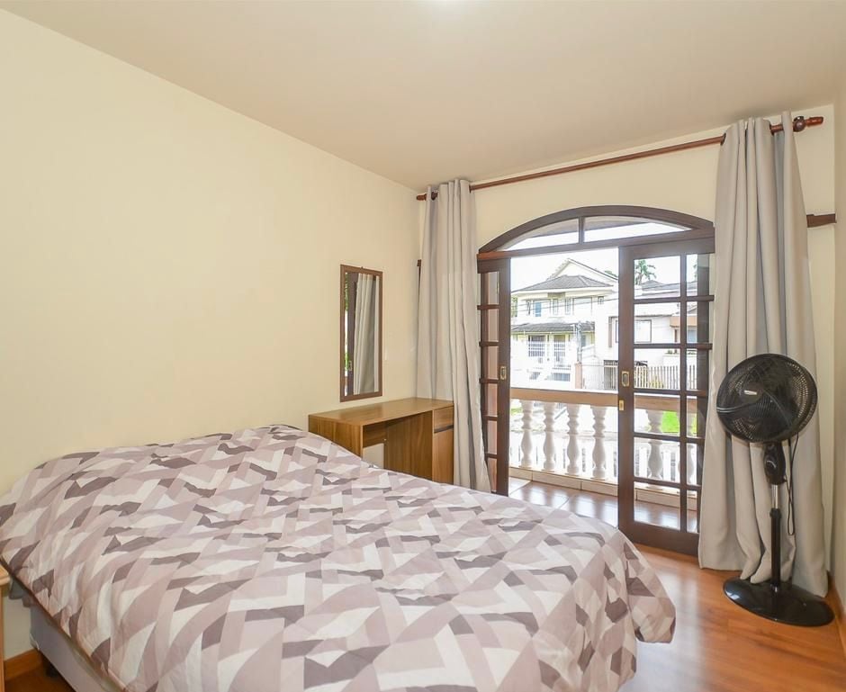 Espaço construído no segundo piso para nossos filhos que mudaram para os EUA e agora queremos receber famílias que valorizam aconchego. Com dois quartos, sala de estar, cozinha equipada em conceito aberto, um banheiro completo com chuveiro a gás, e um lavabo. Churrasqueira no térreo. Cercada de bosque e pomar com árvores frutiferas, pequenos animais silvestres, pássaros e borboletas. Espaço para dois automóveis. Estamos a 2 km do Parque Barigui, 2 km da BR 277 e a 6 km do centro de Curitiba.