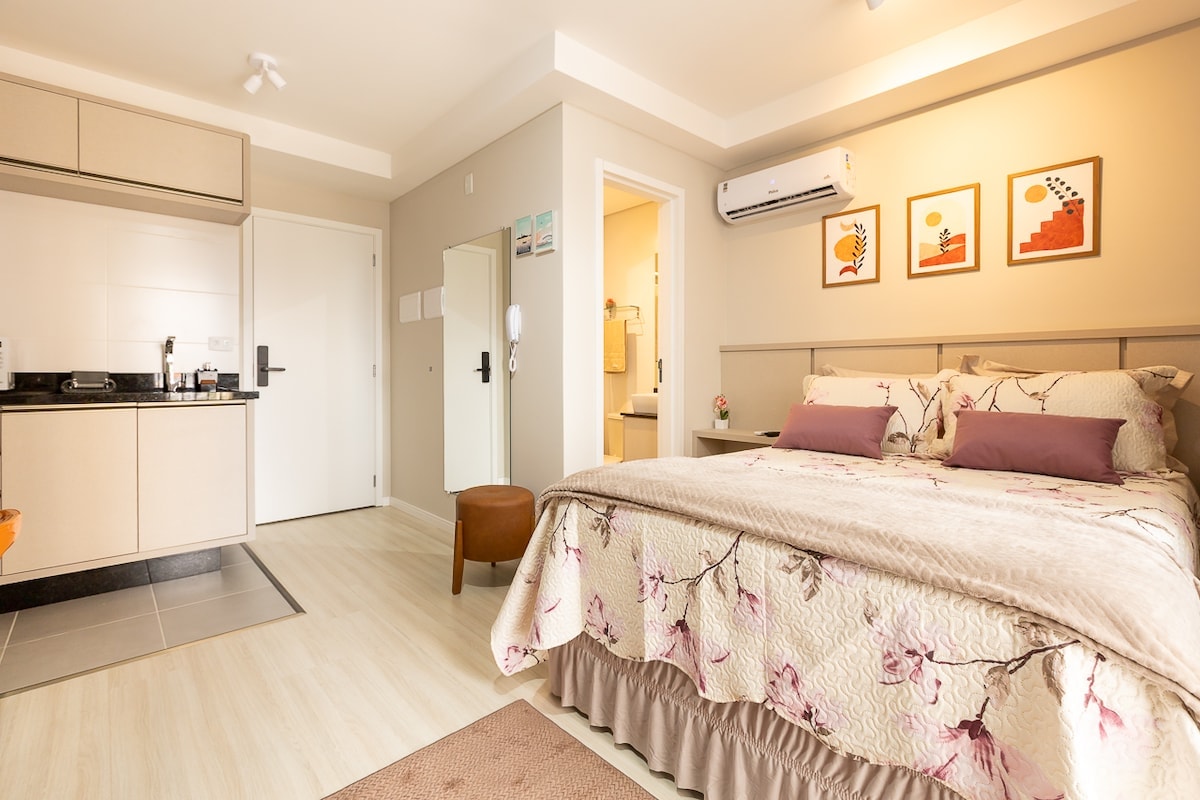 Studio moderno, no Centro Cívico — ideal para quem busca conforto, praticidade e excelente localização em Ctba. Ambiente climatizado, cozinha equipada e Smart TV — perfeito para lazer ou trabalho. 🛏️ Acomoda com conforto até 4 pessoas, roupa de cama de qualidade. • Piscina aquecida • Academia • Sauna • Terraço • Lavanderia (paga) 🚗 Estacionamento disponível no prédio, valor R$ 35 por diária Pago via PIX ao anfitrião.
