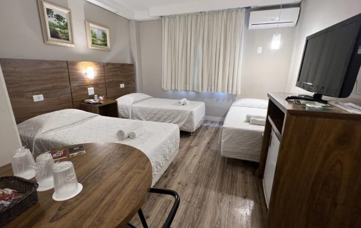 O Hotel Carmel oferece conforto e praticidade em um ambiente familiar e moderno. Localizado em uma região privilegiada, próximo ao aeroporto Afonso pena. Perfeito para viagens a negócios ou passeios em família. Hotel em São José dos Pinhais com ótima relação custo-beneficio, oferecemos café da manhã e estacionamento privado. Suíte com Cama Queen, TV, Frigobar, Ar Condicionado e Wi-fi.