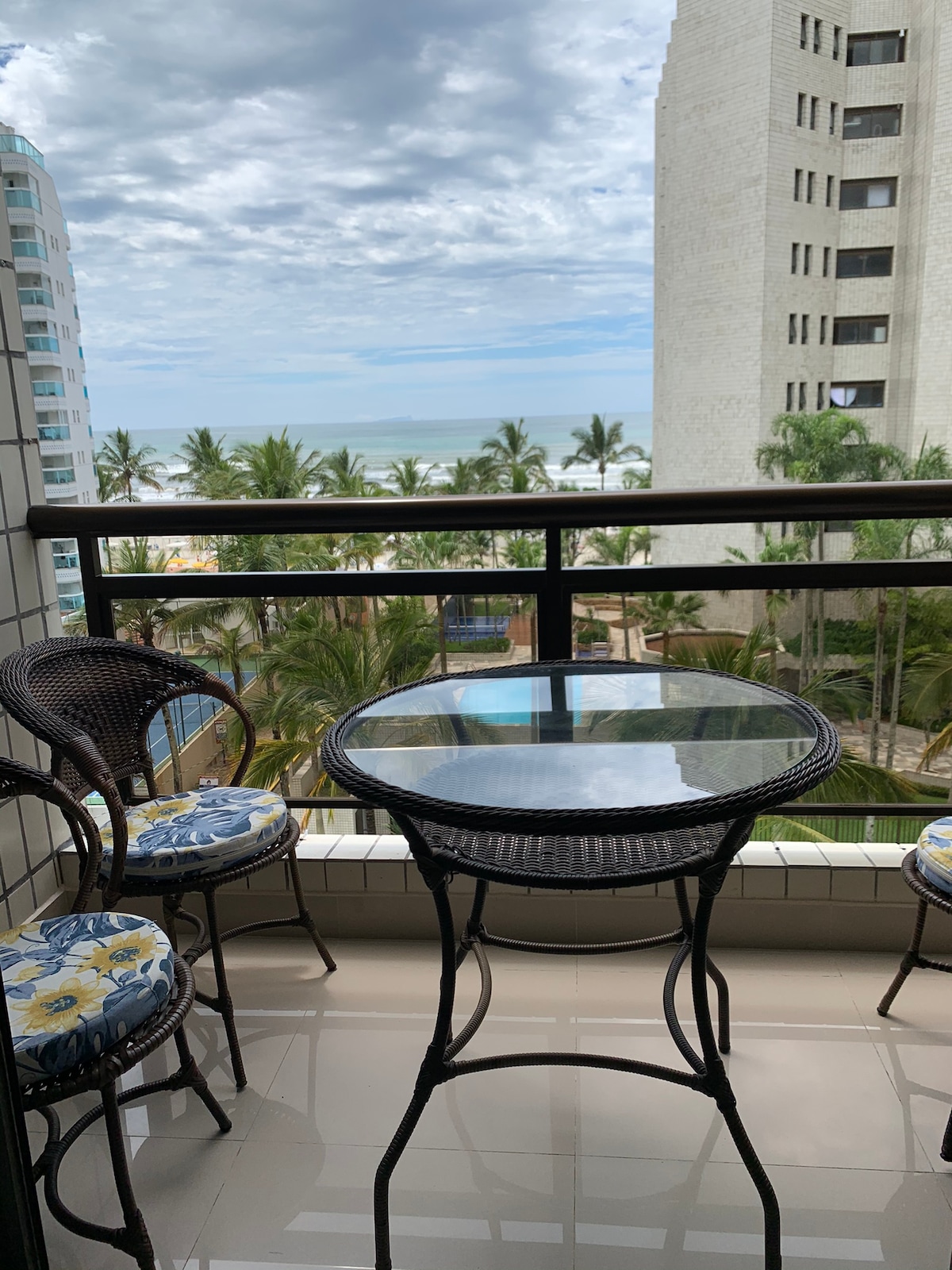 Apto. ideal para descanso a 50 m. da praia c/ amplo terraço gourmet ideal para tomar aperitivos enquanto seus filhos brincam protegidos pela rede de segurança. Living com ar condicionado, com sofá bi cama, ilha com cooktop e forno. Suite com ar condicionado. TV a cabo (rede e senha no local). Serviço de praia com 4 cadeiras, 1 mesa e 1 guarda sol. Não fornecemos roupa de cama/toalhas, somente mantas, travesseiros, toalhas de mesa e panos de prato. No predio temos bilhar, ping-pong, pebolim.