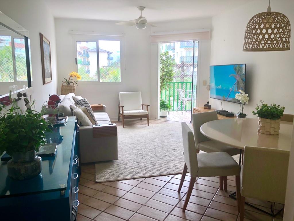 Welcome to Aconchego no casa! ❤ Perfect space for family and friends. Concierge with 24-hour access, cable TV, split air conditioning in four environments and equipped kitchen. Best Riviera location: Shopping, beach, restaurants, markets and stores! »» Make your reservation now ««