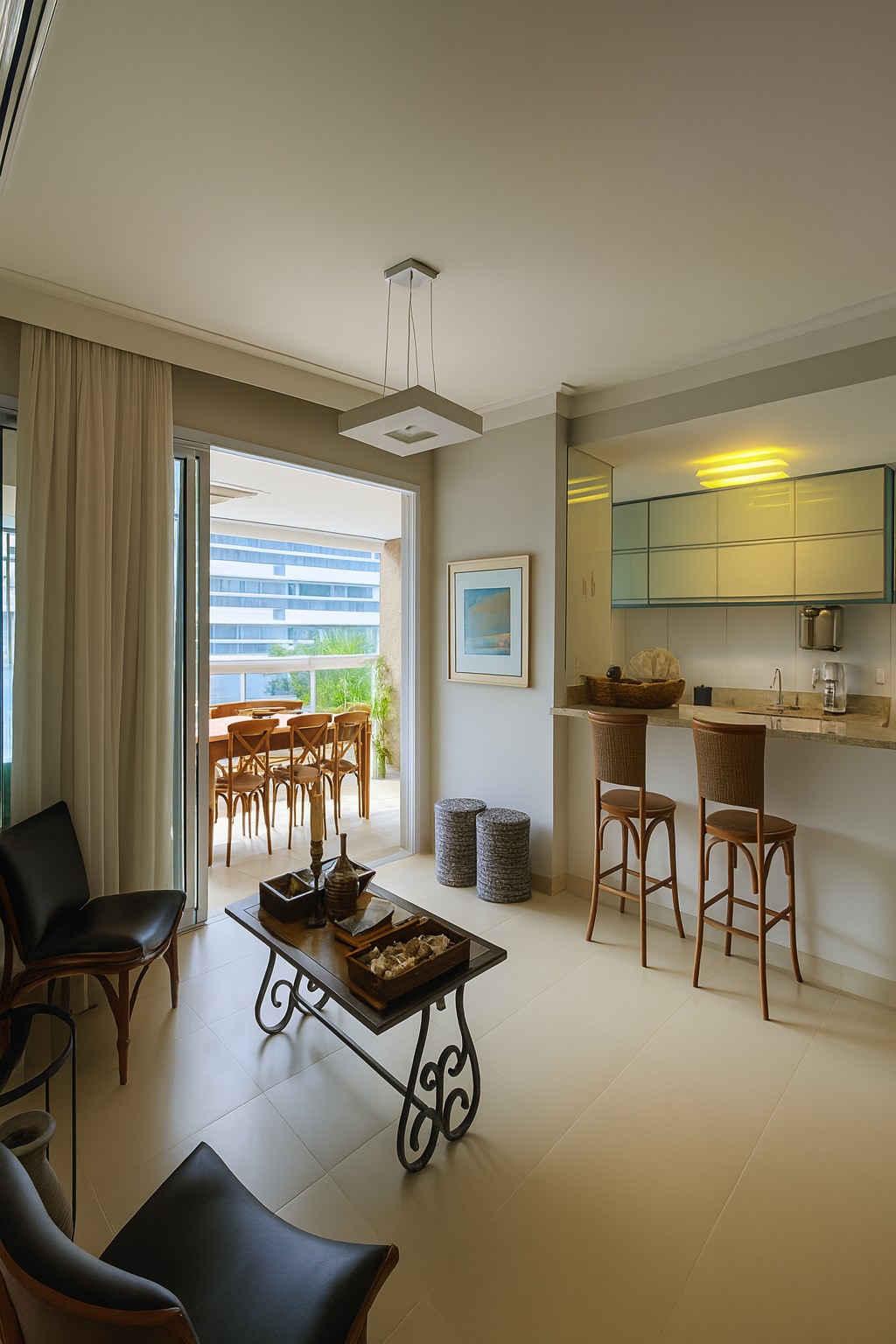 Com design modernista e soluções muito bem pensadas, esse apê integra o convívio social num único ambiente. A sala de estar e a cozinha gourmet flutuam sob a vista privilegiada para a praia, preenchida pela luz natural em abundância. Essa unidade possui características únicas, foi reformado para trazer amplitude em seus ambientes. Destaque para a espaçosa Suite Master que integra dois dormitórios em um. Venha se hospedar num dos prédios mais "queridinhos" do módulo 8.