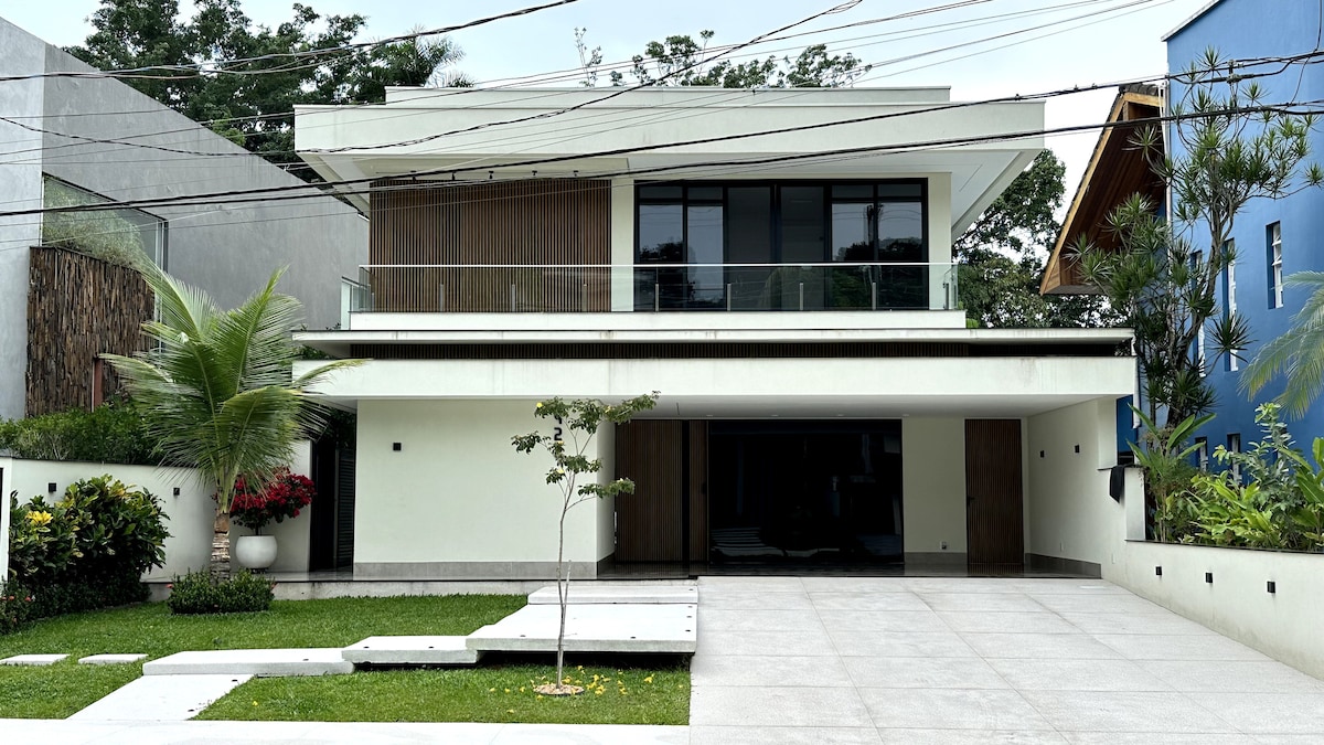 Bem-vindo à sua luxuosa estadia em Riviera de São Lourenço! Casa moderna, recém construída, com 330 m², 5 suítes elegantes, incluindo uma master com spa para 4 pessoas. Desfrute de uma cozinha gourmet completa, sala de estar com sofá reclinável e TV de 72", e um ambiente integrado com vista para a piscina. Relaxe na piscina privativa, aproveite a churrasqueira, explore a praia a apenas 600 metros de distância, no módulo 21. WECARE HOSTING garante uma experiência inesquecível, Superhost.