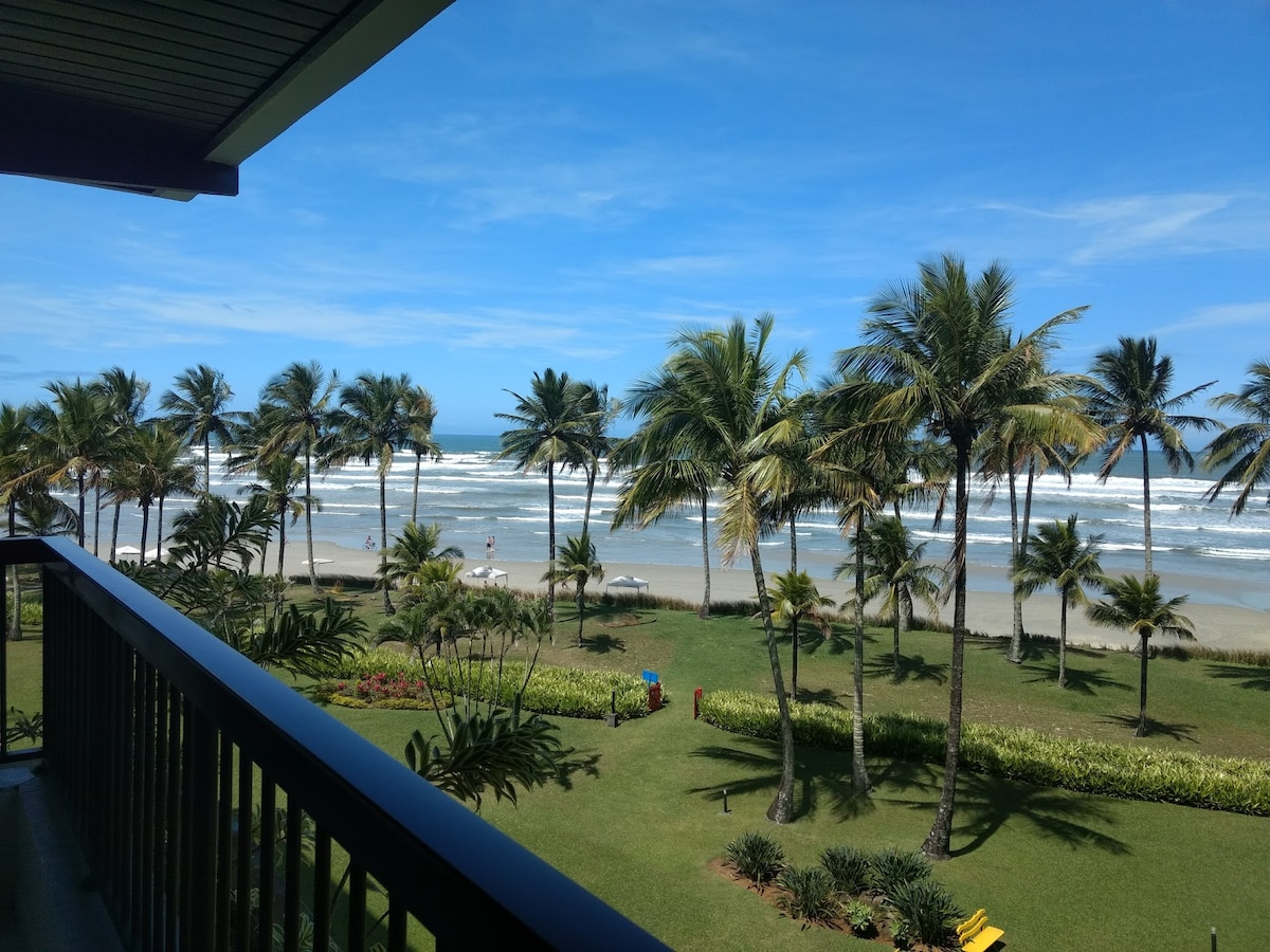 O apartamento é muito confortável à vista é linda ,fica praticamente na areia com serviço de praia com cadeiras e tenda .A decoração e leve e bonita ,temos tudo que uma casa necessita se precisarem de ajuda temos uma ótima funcionária que cobra a diária a parte ,passaremos o contato .. Temos uma piscina aquecida que é muito agradável , Tenho certeza que vocês vão gostar muito .Aqui é um paraíso !!Estamos perto do shopping,restaurantes,campo de golfe .,quadra de Tenis ...