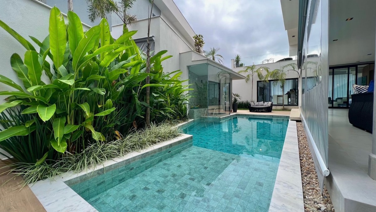 Área privativa 780 m² Terreno 621,38 m² Apenas 6 minutos a pé de distância da praia e 9 minutos a pé do Shopping Riviera 4 suítes + 2 suítes reversíveis americanas Churrasqueira em inox 7 chuveiros 2 duchas 7 banheiros Living com pé direito duplo de 6,30 m Iluminação natural e conforto térmico Ambientes integrados Armários em MDF anti-mofo em todos os cômodos, porta de correr, dobradiças e ferragens com amortecedores Living, Sala de Jantar, Brinquedoteca e Espaço Gourmet