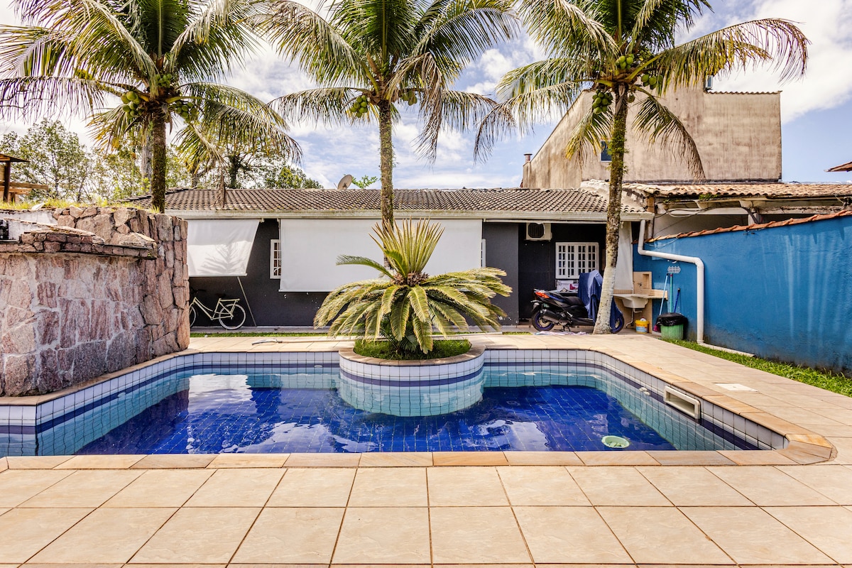The house is very comfortable and in perfect harmony with nature, in gated community and 24h security. The outdoor area has a large garden with palm trees, coconut palms and fruit trees. The barbecue place and table on the balcony allow a perfect integration between all guests, whether inside the house, in the garden, the pool and wet bar. The beach, which is 200m away from the house, is clean, flat and with crystal clear water, with moderate waves.