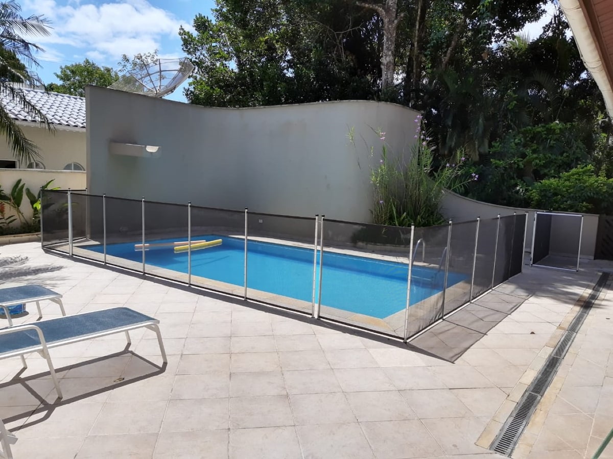 Localizada no Litoral Norte, com praias maravilhosas em nossa linda Bertioga. Casa espaçosa e bem ventilada, fica próximo á praia com muitas árvores e ar puro. AR CONDICIONADOS NOS QUARTOS, wi-fi, jardim, churrasqueira, piscina, estacionamento e espaço para você e sua família curtirem e relaxar ao som dos passarinhos e barulhinho de mar ou mesmo com sua música favorita. Piscina com jatos de hidromassagem e prainha que facilita a brincadeira das crianças e campo de visão das mamães. Um amor.