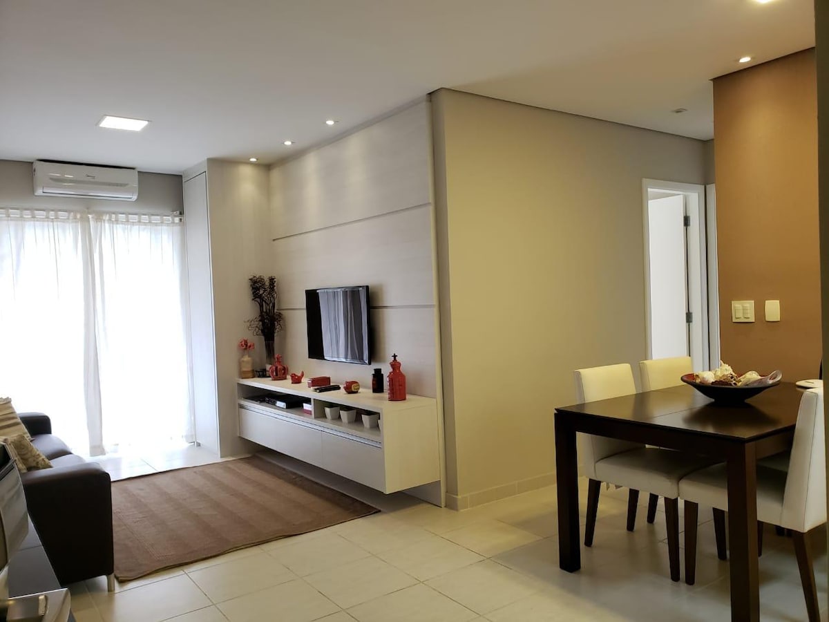 Módulo 6, a 200m da praia Quarto com beliche + cama auxiliar, suíte com cama box queen-size. Smart TV na sala. Cozinha com utensílios de uso geral, geladeira, freezer, microondas, airfryer e lavanderia com máquina de lavar roupas . Travesseiros disponíveis. É necessário levar roupas de cama e banho. Ar condicionado e ventiladores de teto -quartos e sala. 1 (uma) vaga de garagem descoberta e indeterminada.