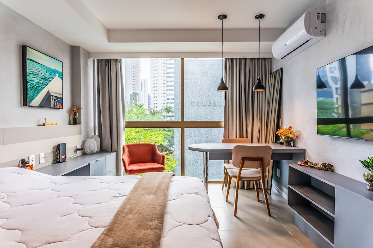 Conforto e praticidade em Boa Viagem! A apenas 500m da praia, próximo ao Shopping Recife, Carrefour na esquina e padaria em frente. Fácil acesso a transportes e apenas 9 minutos do aeroporto.