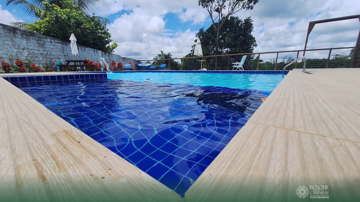 Acomoda até 2 adultos, este recém-equipado studio flat é perfeito para férias ou trabalho. Com 27 m² de área útil, o espaço é confortável e prático para os hóspedes. Imóvel: - 1 Quarto com 1 cama - 1 banheiro privativo - 1 Cozinha - Garagem coberta - Diversos eletrodomésticos e utensilios Condomínio: - Recepção - Piscina - Mercearia - Lavanderia - Outros A localização é no coração de Candeias, com fácil acesso a restaurantes, supermercados, padarias, farmácias e outros.