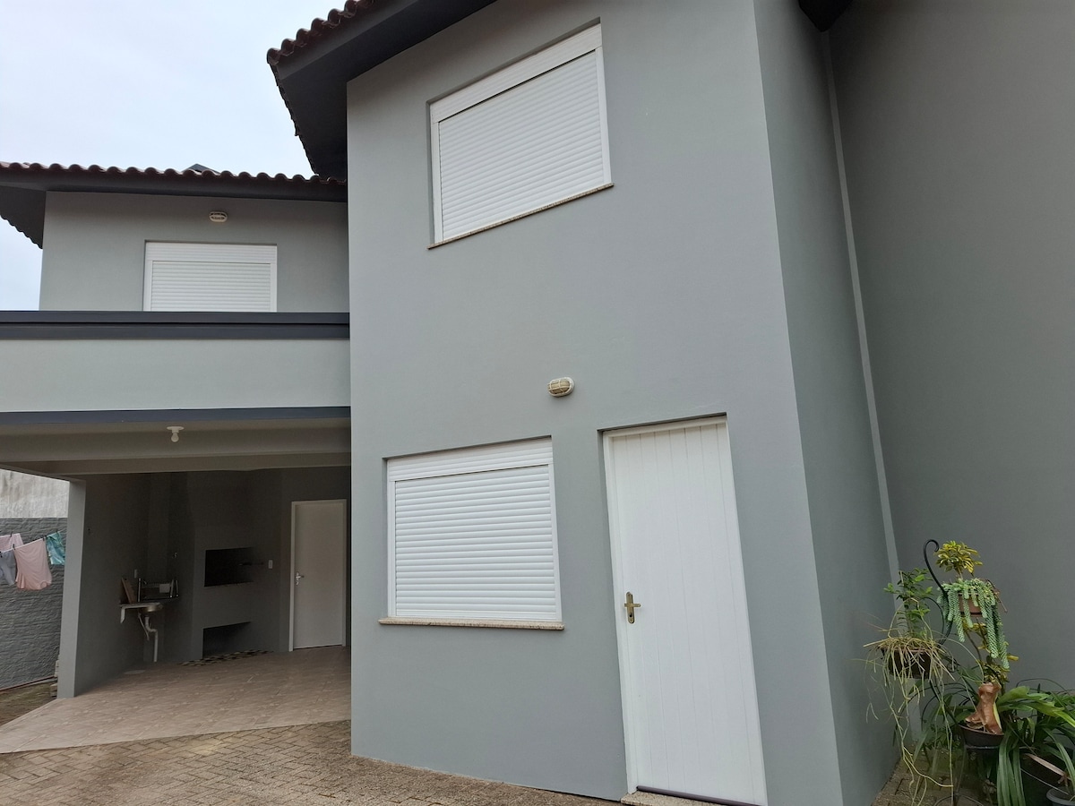 Casa de esquina, amplo espaço interno, dois quartos com ar condicionado(uma suíte) banheiro social com chuveiro, lareira, espaço da churrasqueira fechado, garagem, pátio, wi-fi, cozinha, tudo isso a uma quadra da praia.