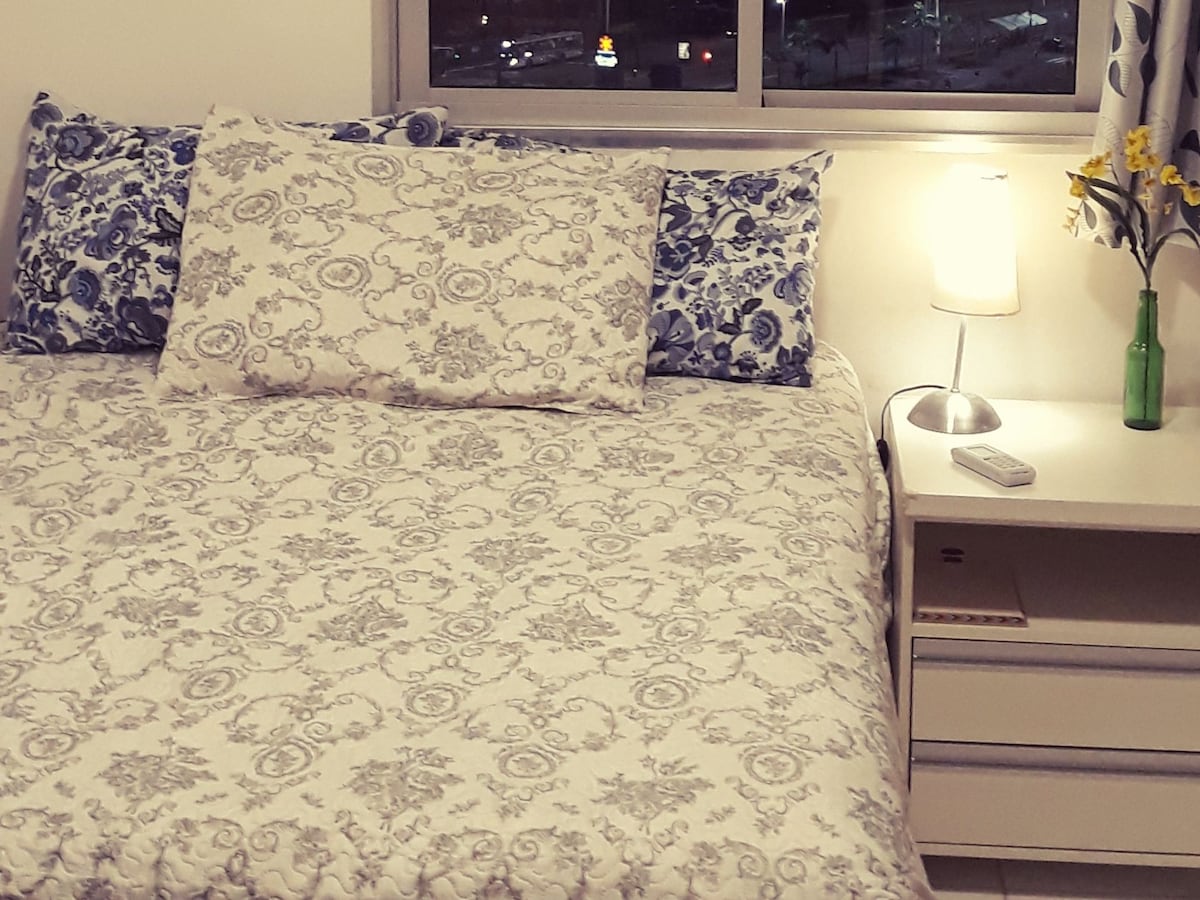 Localizado em um dos melhores bairros da cidade, lotado de completa estrutura a 5 minutos das praias de São Luís, supermercados restaurantes, lanchonetes, bares, conveniências, academias, bancos e farmácias, com portaria 24hrs, onde impera a tranquilidade, ambiente familiar. trata-se de um imóvel bem aconchegante com sala de estar/jantar com TV, Wi-fi, quarto com ar-condicionado, banheiro compartilhado e chuveiro elétrico, fogão de indução, geladeira e área de serviço, com máquina de lavar roup