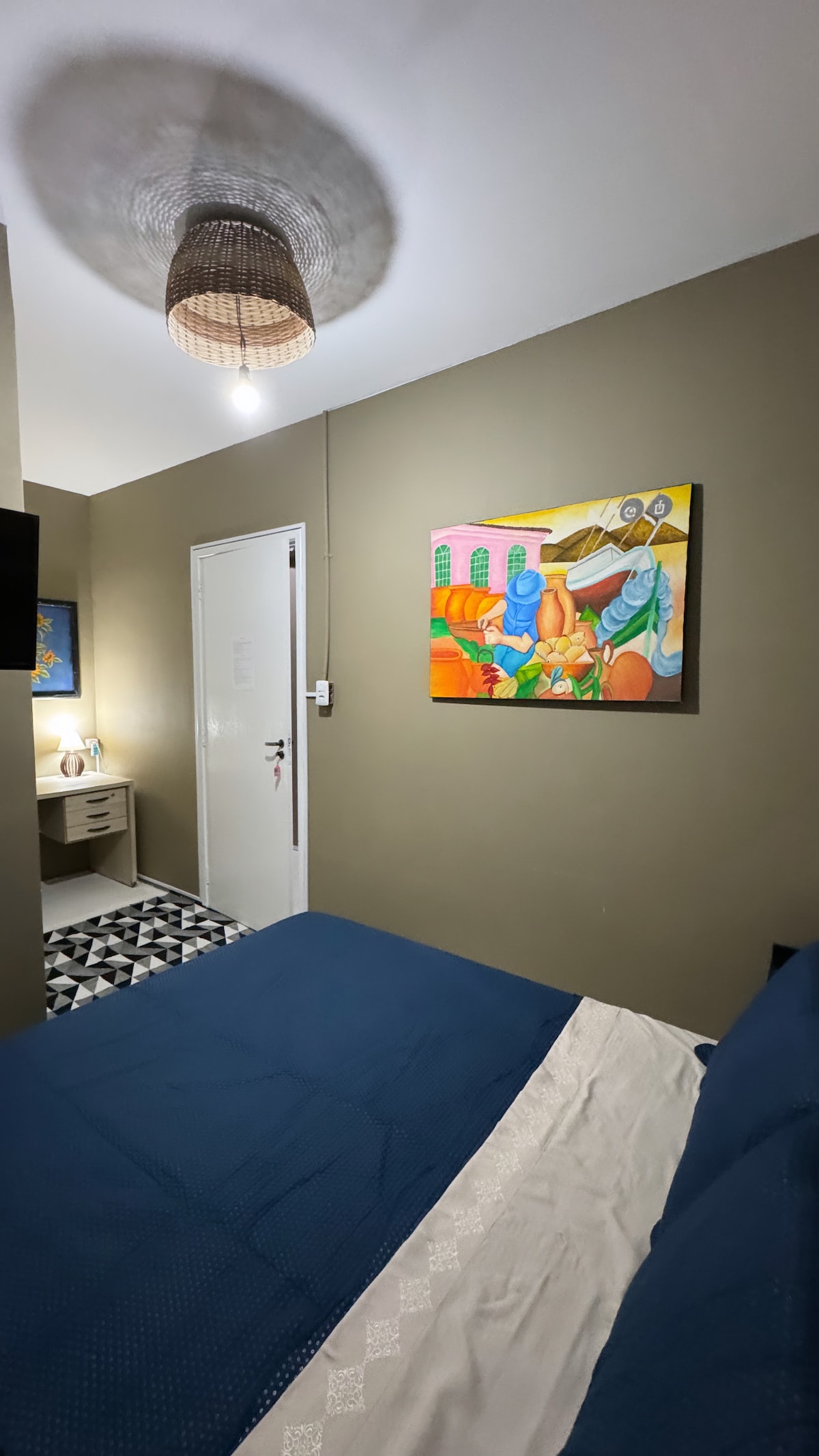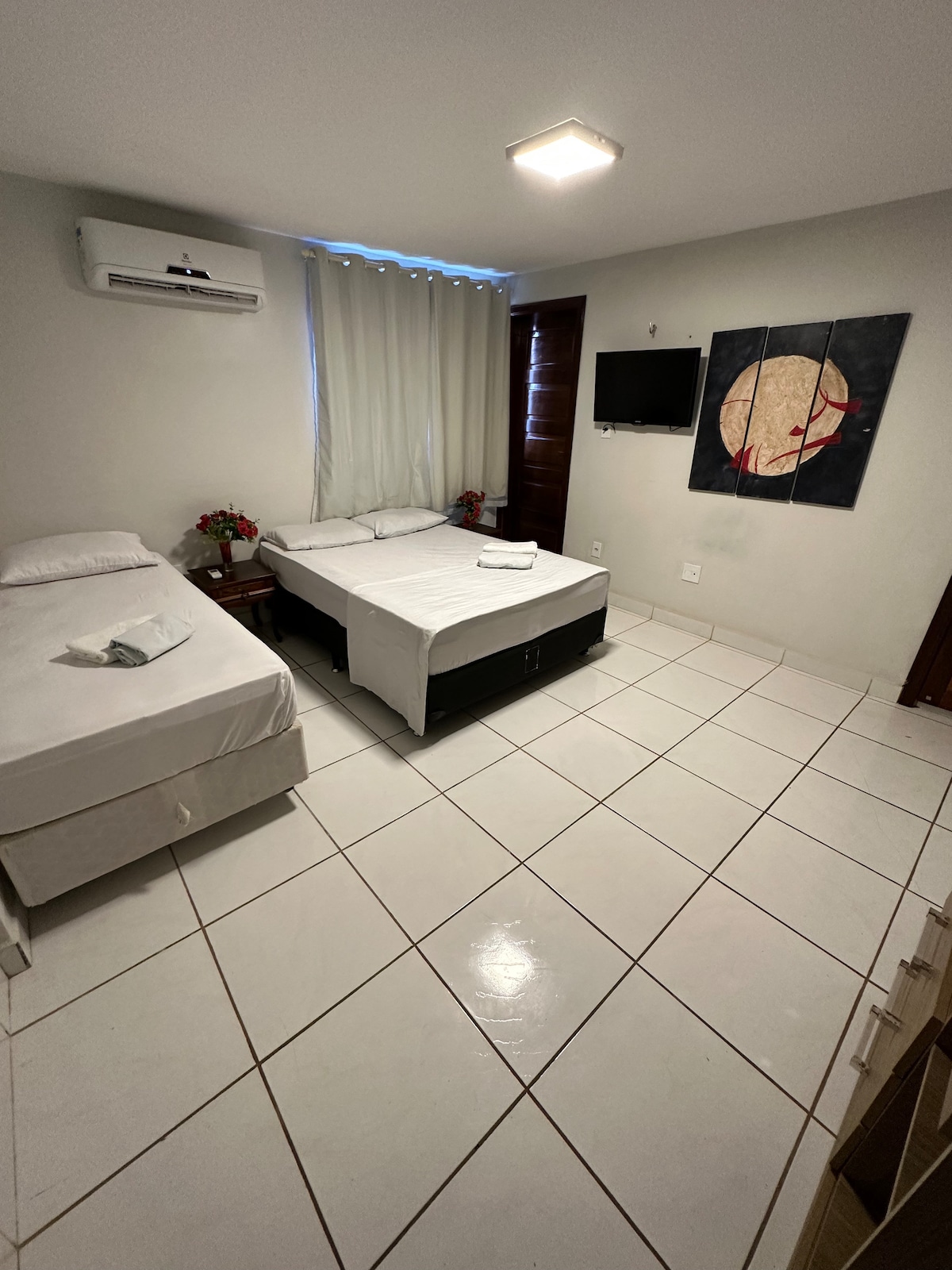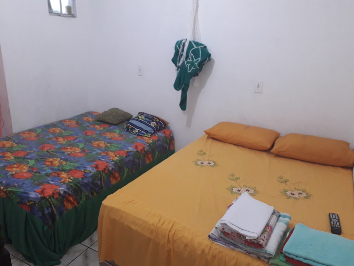 E localizado próximo ao centro da cidade, perto de padarias, feira, supermercado, paradas de ônibus, táxis, temos Wi-Fi, geladeira, duas camas casal e uma solteiro, escapa para rede, ventilador.