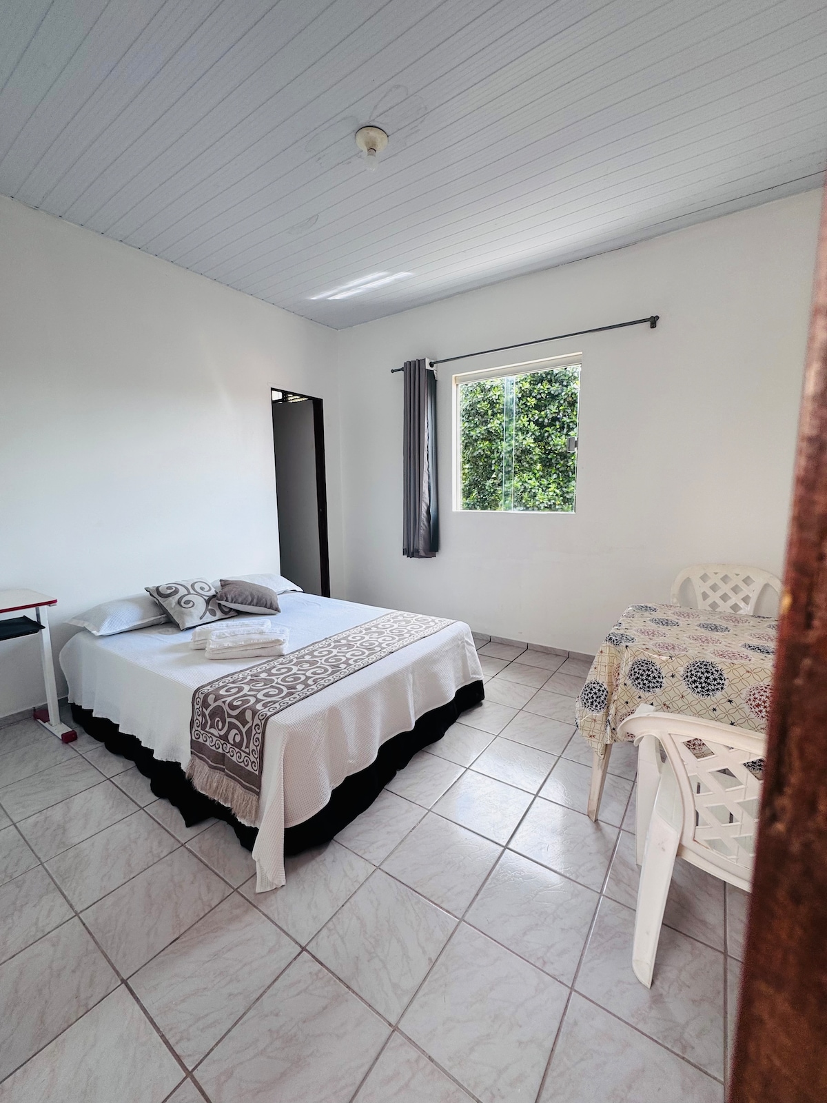 E localizado próximo ao centro da cidade, perto de padarias, feira, supermercado, paradas de ônibus, táxis, temos Wi-Fi, geladeira, duas camas casal e uma solteiro, escapa para rede, ventilador.
