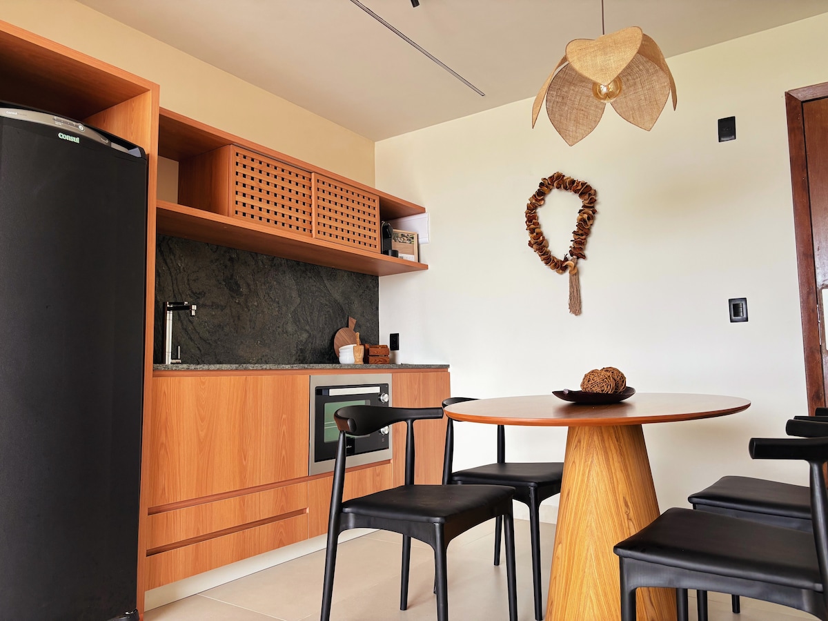 Desfrute do conforto e elegância neste apartamento moderno, a poucos metros da praia! Com decoração charmosa, espaço aconchegante e cozinha completa, é o refúgio perfeito para relaxar. Aproveite a iluminação natural, a área de jantar sofisticada e um ambiente bem equipado para sua estadia. Ideal para casais, famílias ou trabalho remoto. Venha curtir dias inesquecíveis com todo o conforto!