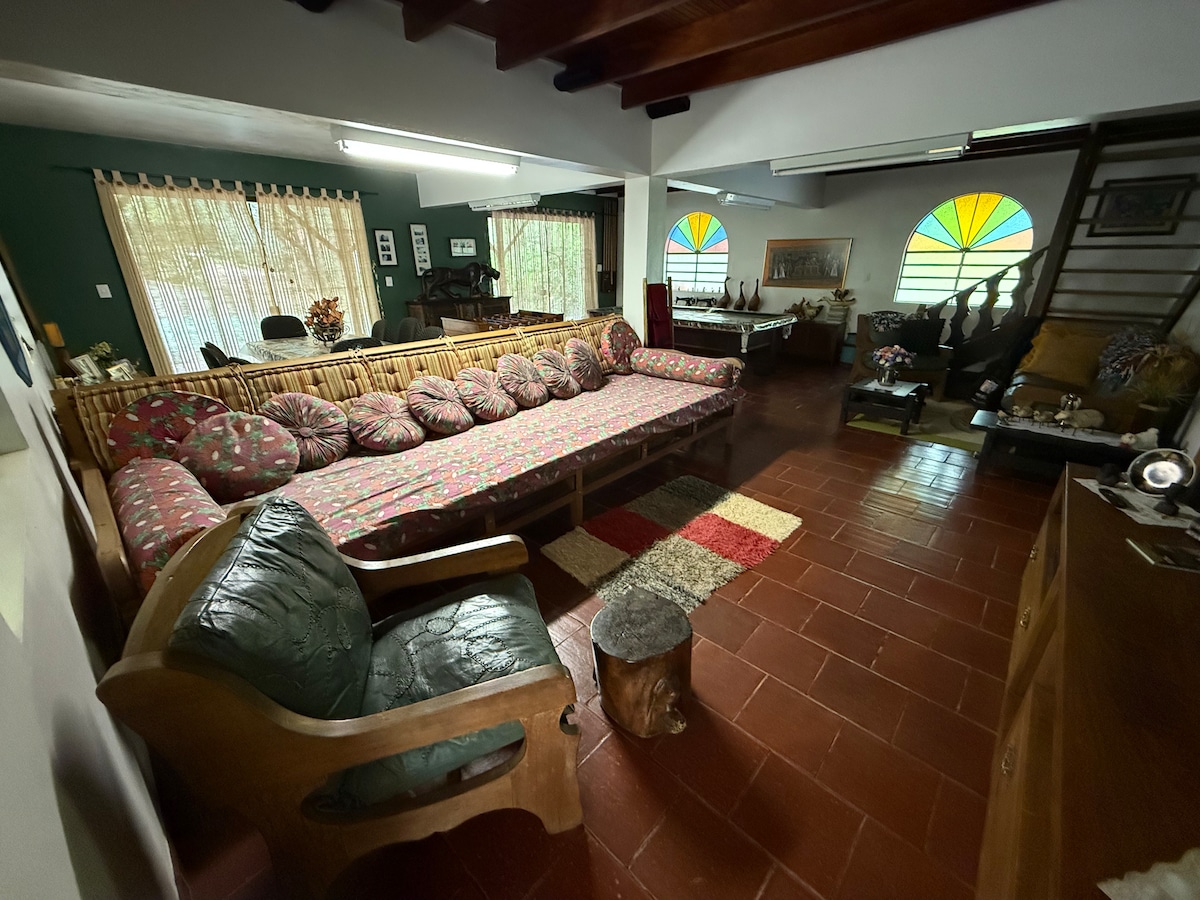 Para famílias em busca de um refúgio espaçoso e acolhedor, nossa casa no sítio é o local perfeito para desfrutar momentos de descanso e lazer. Com capacidade para até 16 pessoas, a casa oferece um ambiente amplo e confortável, ideal para reunir a família e criar memórias inesquecíveis. Em datas comemorativas como carnaval, natal e Reiveillon consultar oferta especial. Local possui piscina, lago para pesca esportiva, cachoeira, local para churrasco e caminhada.