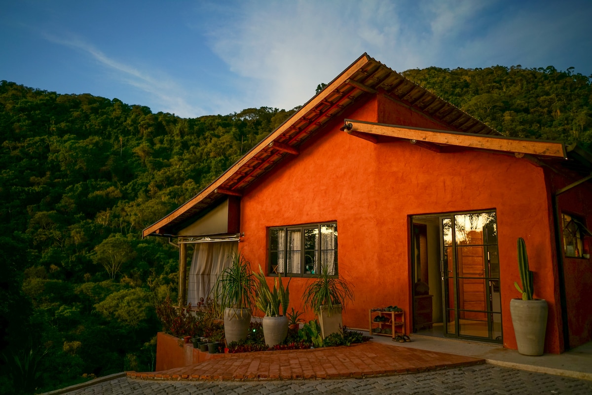 ‘Casinha’, assim chamada carinhosamente por nós. Casa de roça confortável sem perder a originalidade. Rodeada pela natureza com uma vista encantadora para um vale de montanhas e o som de um pequeno riacho ao fundo. Você pode aproveitar a lareira, fogão a lenha e uma charmosa varanda bem frequentada por beija-flores. O gramado que rodeia a casa é perfeito para tomar um solzinho, apreciar o céu estrelado, fazer almoços integrado a natureza ou simplesmente descansar nas espreguiçadeiras.