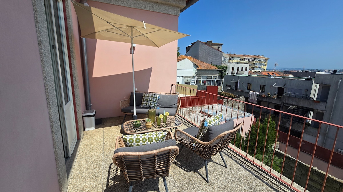 Craving a life in a penthouse with a river view? Curious to explore all of the joys that Porto and the Douro river have to offer? We're thrilled to offer this refurbished penthouse where you can enjoy two balconies, one of which has a south-facing, unobstructed Douro River view -- and top-speed WiFi and AC. You can walk outside and wander / bike / scoot along the Douro river in either direction. All of Porto is a short drive away, including the beach! The hosts are Porto born and raised.
