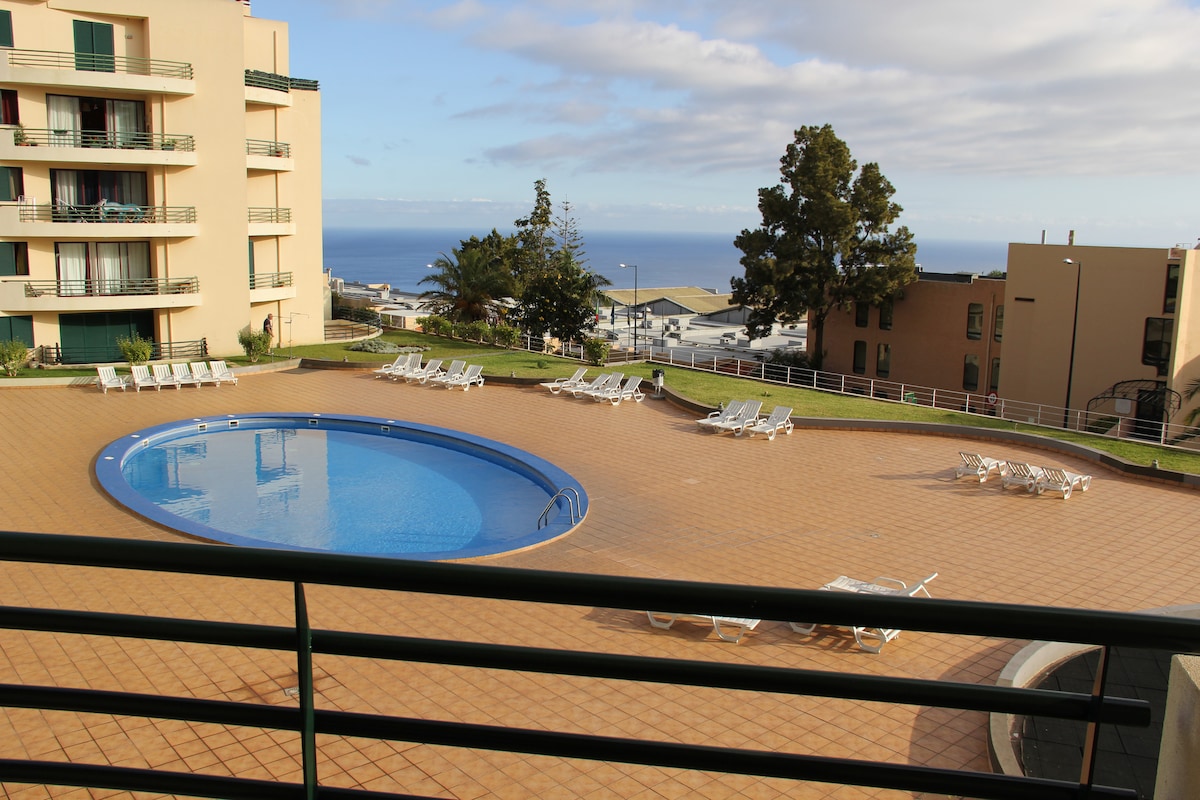 MAKE A RESERVATION NOW! The BEST AIRBNB EXPERIENCE you will ever have! - It is in the most exclusive area of Funchal - 5 min walk from Forum Madeira Mall - A beautiful BALCONY from where you can look at the ocean and the breathtaking sunsets. - The master bedroom has a spectacular OCEAN VIEWS and a private bathroom. - It has LUXURY amenities, including a POOL and a small playground. It's very close to shops, restaurants, the beach and 10 min from the historic area.