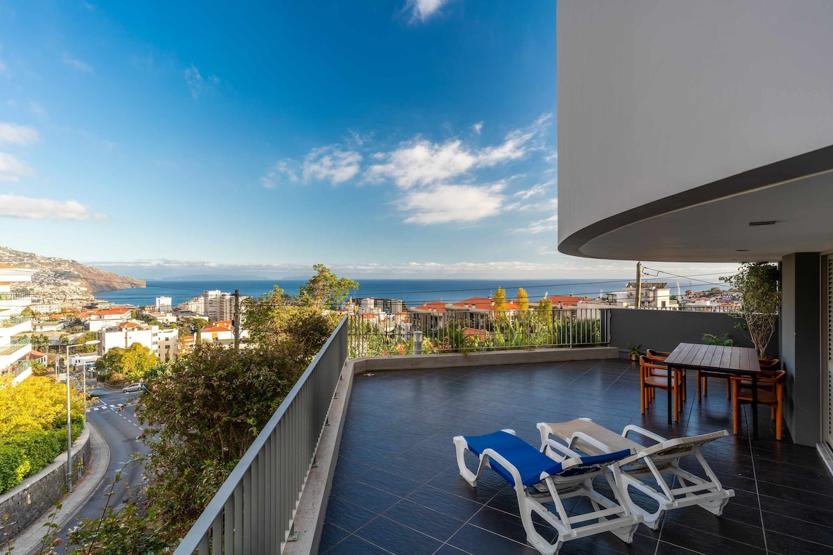 Enjoy a magical vacation overlooking the ocean just 5 minutes from downtown. Stylish and comfortable apartments have all the amenities. On the roof of the house there is a platform where you can sunbathe and enjoy the view of the center of Funchal and the ocean. In the new year from this point the best view of New Year's fireworks! The center and the beach can be reached: on foot 45 minutes, by bus (stop near the house) or taxi 5-8 minutes. There is a restaurant on the ground floor of the house.