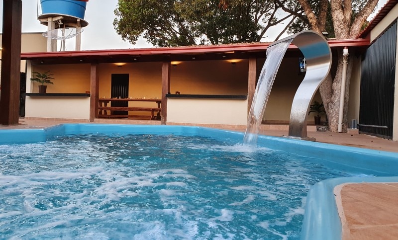 Casa de aluguel para temporada no Araguaia na cidade de Luiz Alves/GO: - 6 suítes completas com armários com 18 camas Box e ar condicionado (com espaço para mais colchões) - Wi-fi - Estacionamento - Lavanderia - TV 65”, sofás e mesa - Cozinha completa com churrasqueira. - Banheiro externo - Piscina com hidromassagem, compartimento para crianças, cascata personalizada, iluminacao em Led.