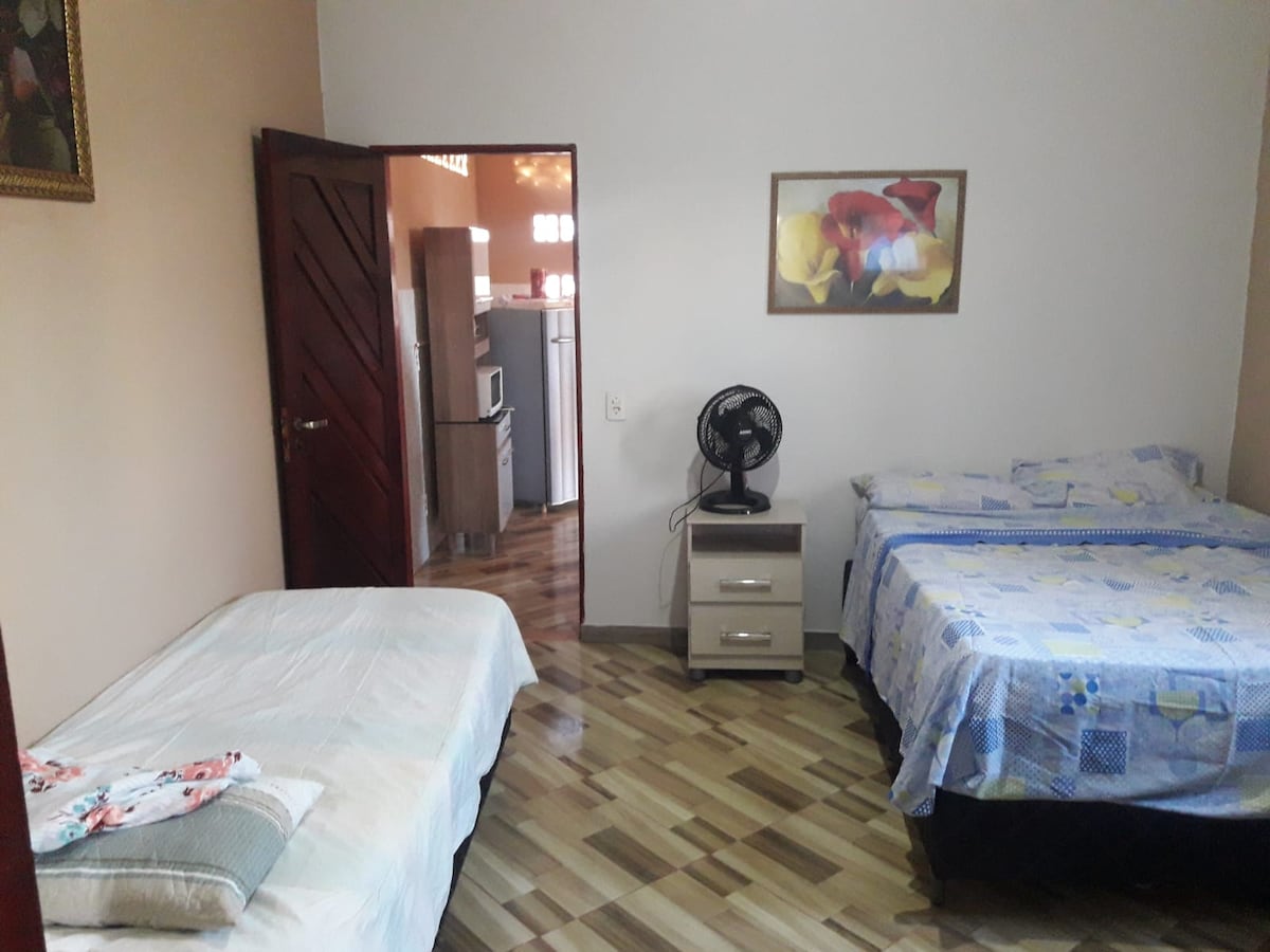 Com a preocupação do aumento de hospedagens com fins de home office e lazer procuramos deixar o ambiente o mais agradável e com a Internet rápida para estes fins. A cozinha possui liquidificador, forno elétrico, fogão elétrico, sanduicheira, cafeteira dolce gusto, frigobar 127L e utensílios básicos. Sala com TV smart 32", sofá cama e cofre. O banheiro com chuveiro elétrico, secador de cabelo e jogo de banho incluso. No quarto a cama queen co jogo de lençol incluso e o ar condicionado 12 mil btus