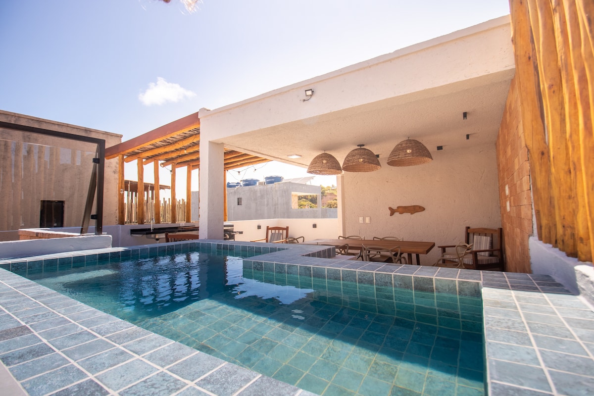 A Casa Essência é composta por sala climatizada com cozinha integrada completamente equipada e linda vista da natureza, 2 suítes climatizadas, rooftop com piscina c/ hidro e cascata, chuveirão e churrasqueira, um aconchegante ambiente coberto com cozinha auxiliar, sofá-cama, ventilador de teto, frigobar retrô, TV smart, lavadora de roupas* e lavabo. A casa conta com Wi-Fi de 300 mb, TVs Smart, suítes com excelentes colchões e confortável enxoval de cama e banho, além de roupões exclusivos.