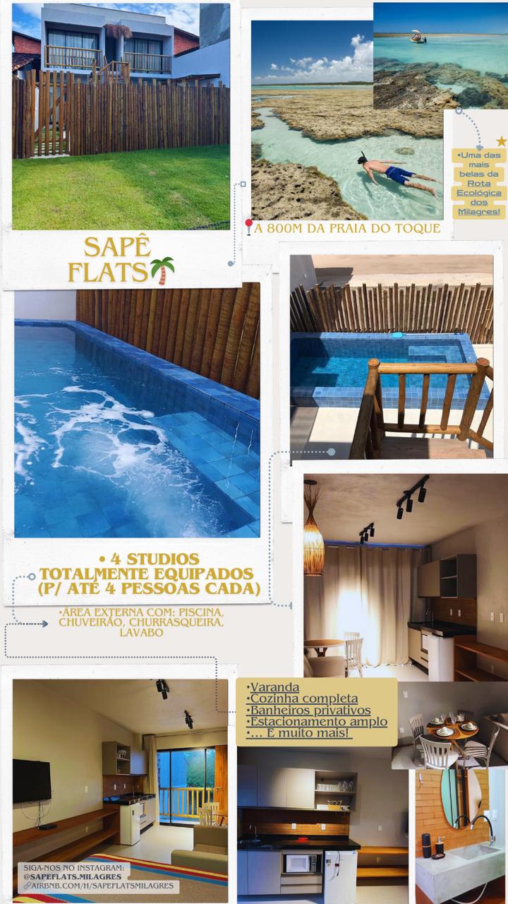 Localizada em condomínio fechado - MILAGRES PÉ NA AREIA- CASAS DE CHARME . Total segurança e tranquilidade . Bangalô de luxo , com piscina privativa. Ideal para lua de mel ou pra quem quer bom gosto e privacidade . Localizado à beira mar da Praia do Toque que é a melhor praia de São Miguel dos Milagres. Vizinho a restaurantes maravilhosos . O jangadeiro vem pega-los em frente a casa para te levar a passeios incríveis as piscinas naturais da região . Oferecemos café da manhã