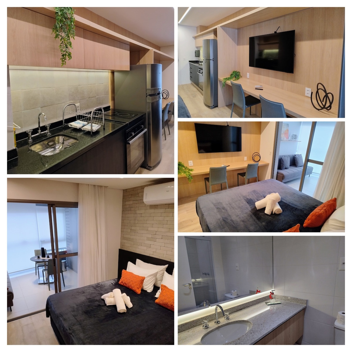 Studio equipado com vista (34m2 - 18º andar). Apto está ao lado da estação Brooklin do metrô, e 12 minutos de carro até o Aeroporto de Congonhas. . >> Locais próximos: . Hípica Paulista . Clínica Einstein . Consulado Americano >> Shopping centers próximos: . Shopping Morumbi . Shopping D&D . Shopping Ibirapuera . Shopping JK Iguatemi >> Você terá no condomínio: . Portaria 24h; . Academia; . Lavanderia OMO; . Coworking;