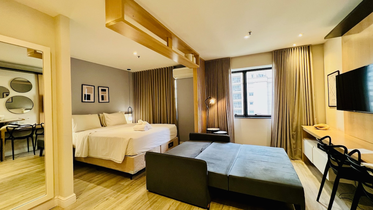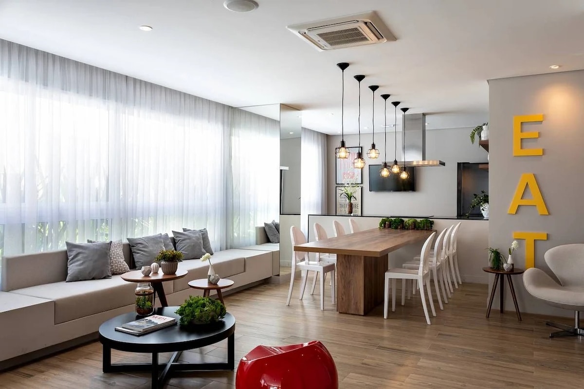 Studio de 26m² com decoração assinada por arquiteta no coração do Jardins. Ambiente aconchegante e ideal para pessoas que viajam sozinhas, entre amigos, casais e famílias com filhos! Hospedamos até 4 hóspedes com conforto e versatilidade Ficamos localizados à 3 min da famosa R. Oscar Freire: segura, repleta de restaurantes, lojas, farmácias e mercados Em uma região central, ideal para qm tb deseja explorar pontos importantes da cidade, como o Parque Ibirapuera, Avenida Faria Lima, entre outros