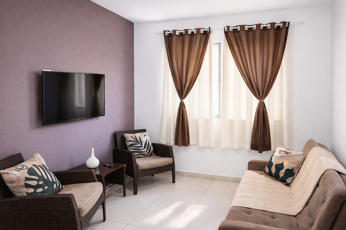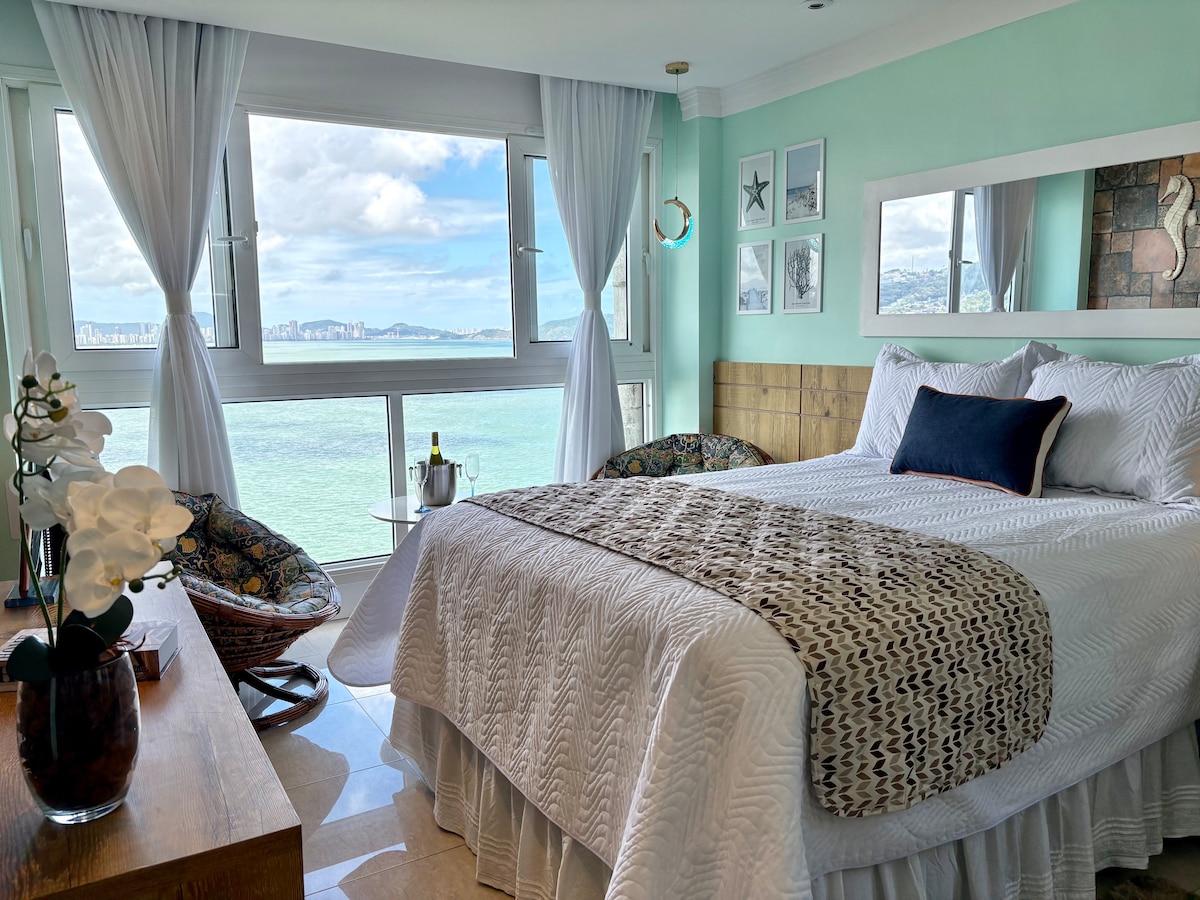 Relaxe neste espaço calmo e cheio de estilo e fique zen. Temos um quarto com cama Queen oriental com colchão Castor padrão hotelaria, sala de estar com sofá-cama casal (espuma D33) e smart TV de 43 polegadas com apps HBO Max, Disney, Prime e Apple TV, além de cozinha equipada. O espaço também conta com ar condicionado Split inverter de 18.000 Btus. Além disso temos espaço para home office, com internet fibra de 500 Megas, de frente para o oceano. Espaço kids, salão de jogos e Pet Place 🐾