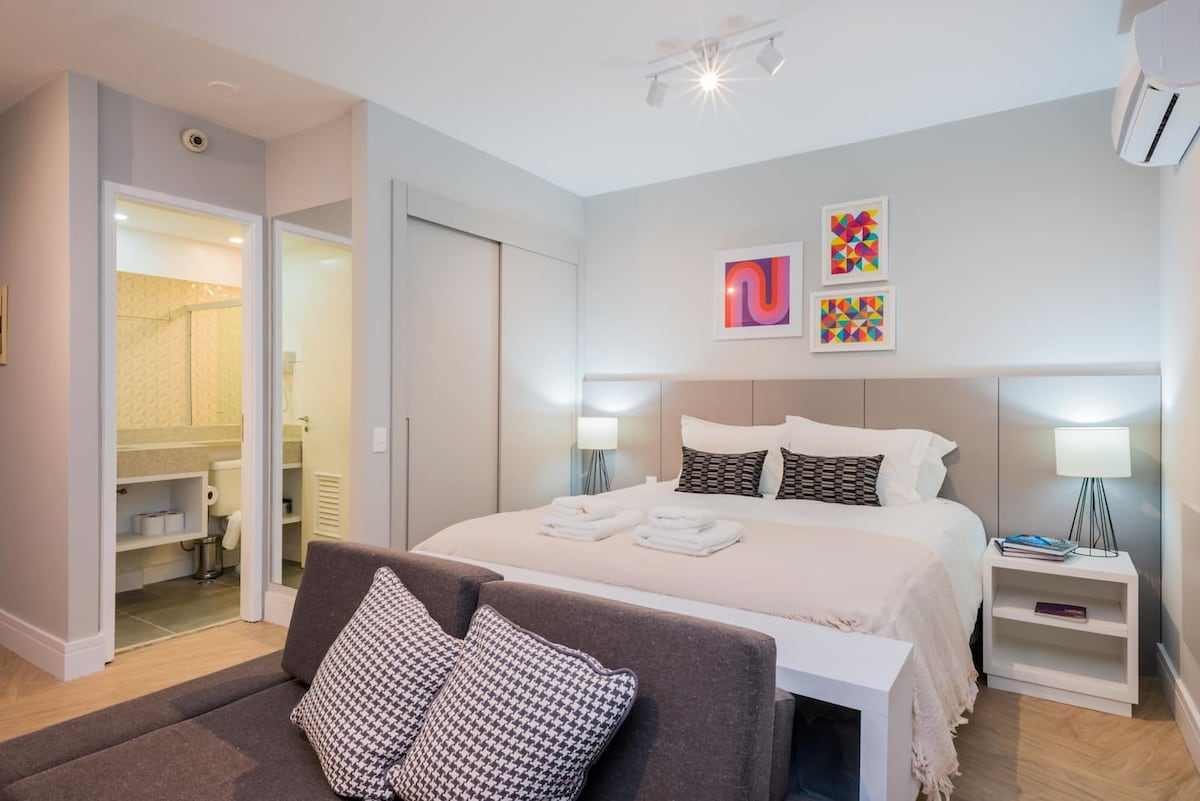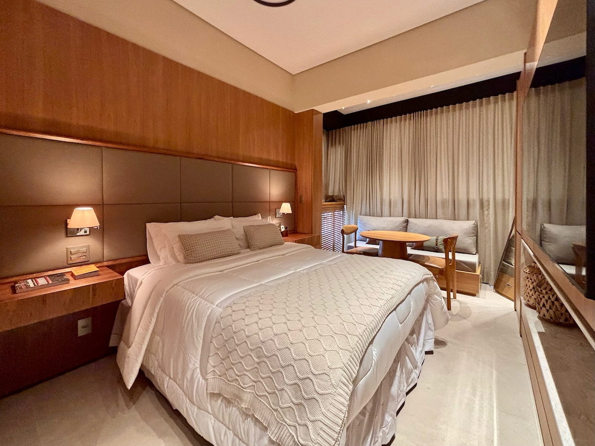 Live at SP's most coveted address, just steps away from the best bars, restaurants, and business hubs. The highlight? Absolute silence with soundproof windows for an impeccable night's sleep. Enjoy hotel comfort with the freedom of home: • Daily cleaning & 24h reception • Free parking with valet service • High-speed Wi-Fi, Inverter AC & Smart TV • Fully equipped kitchen Perfect for business or leisure!